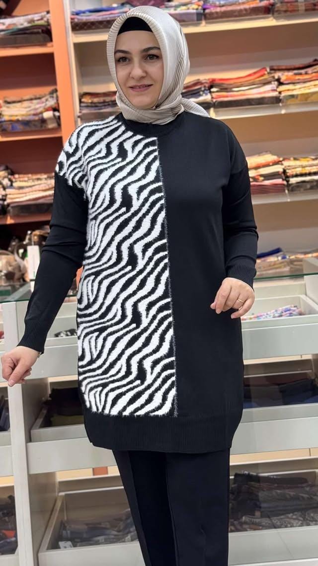 Zebra Desen Detaylı Triko Tunik Siyah / 35022