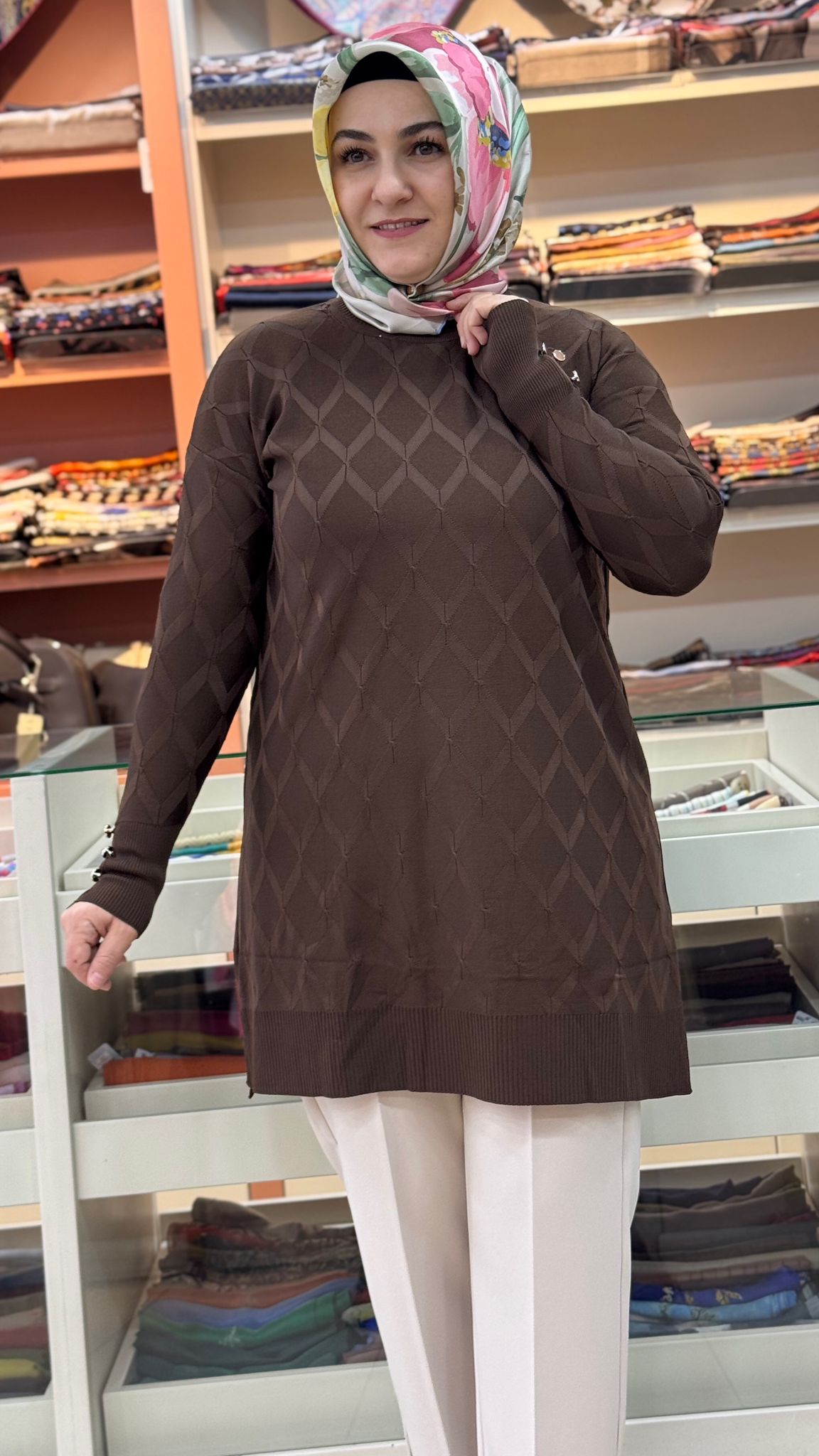 Baklava Desen Triko Tunik Acı Kahve/3288