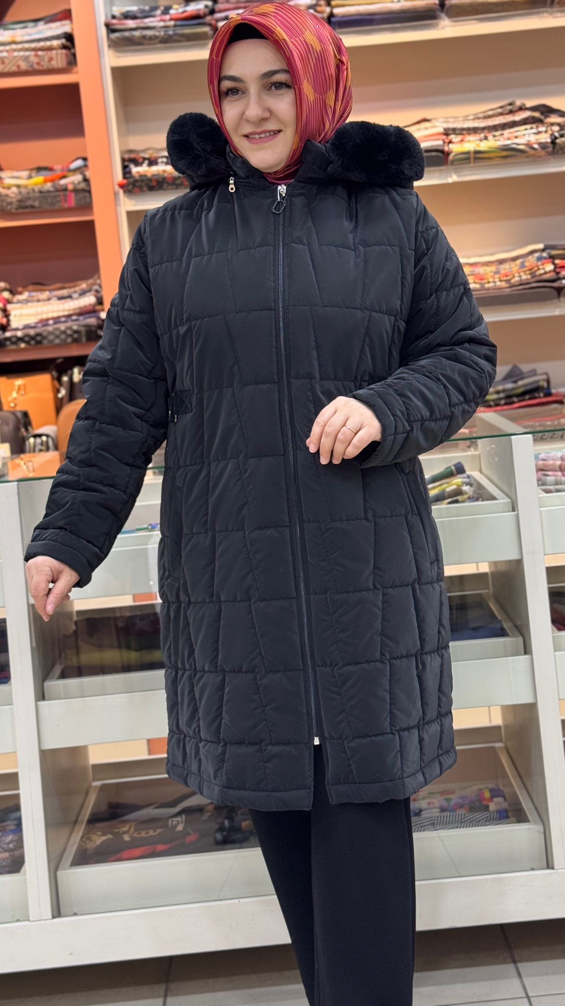Bardak Desenli Şişme Mont Siyah/ 6177
