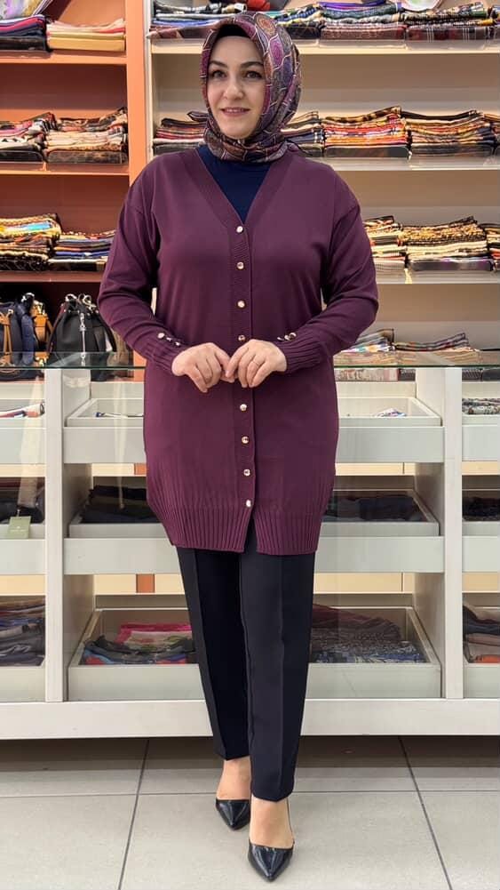 Basic Triko Hırka Mürdüm/3176