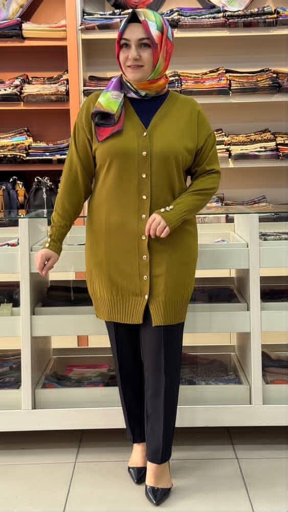 Basic Triko Hırka Yağ Yeşili/3176