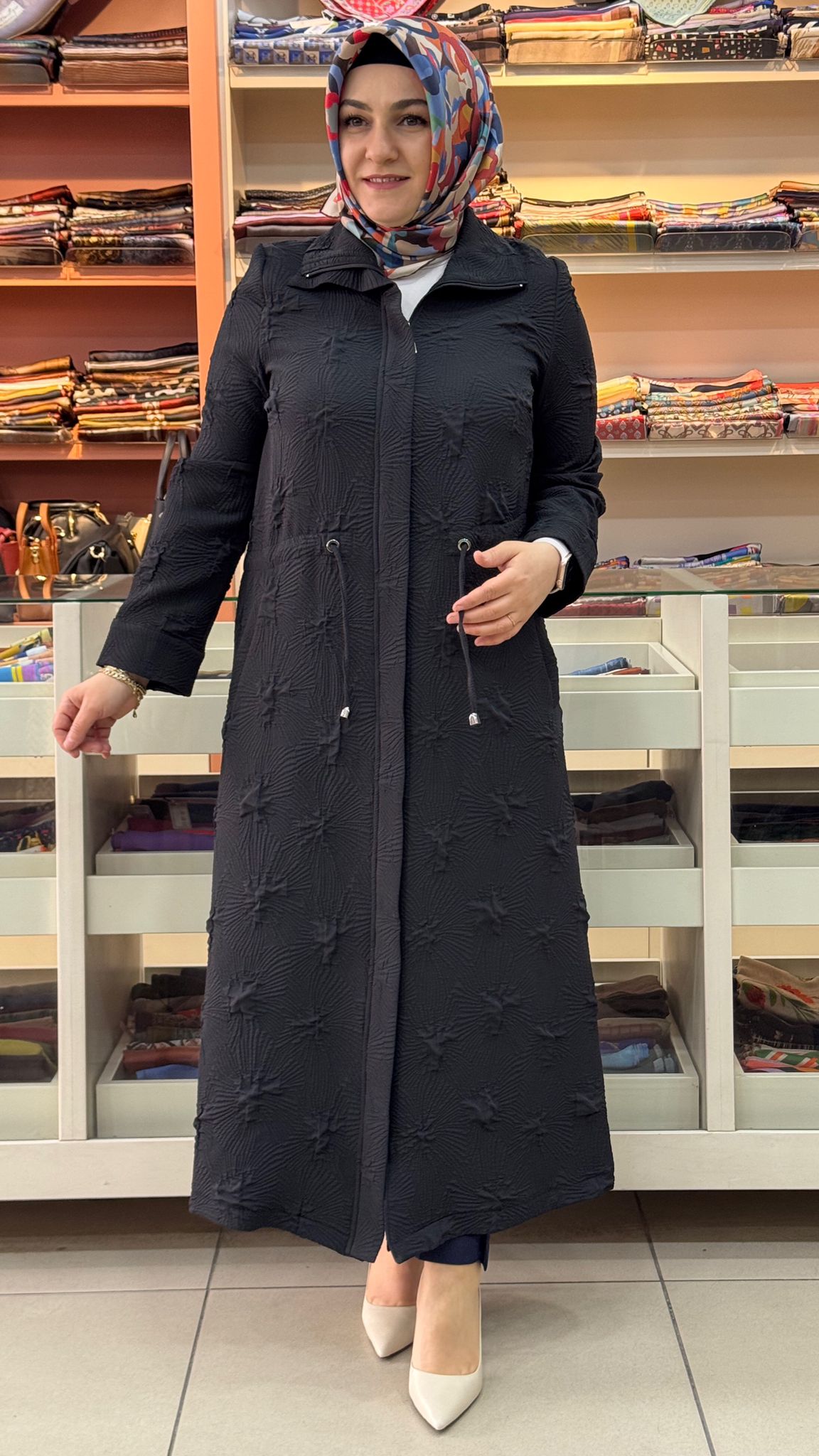 Belden Büzgü Detaylı Dik Yaka Kap Siyah/4388