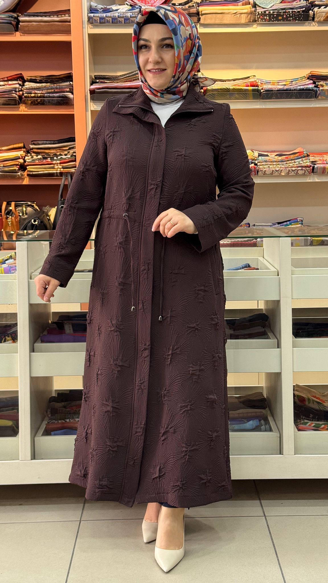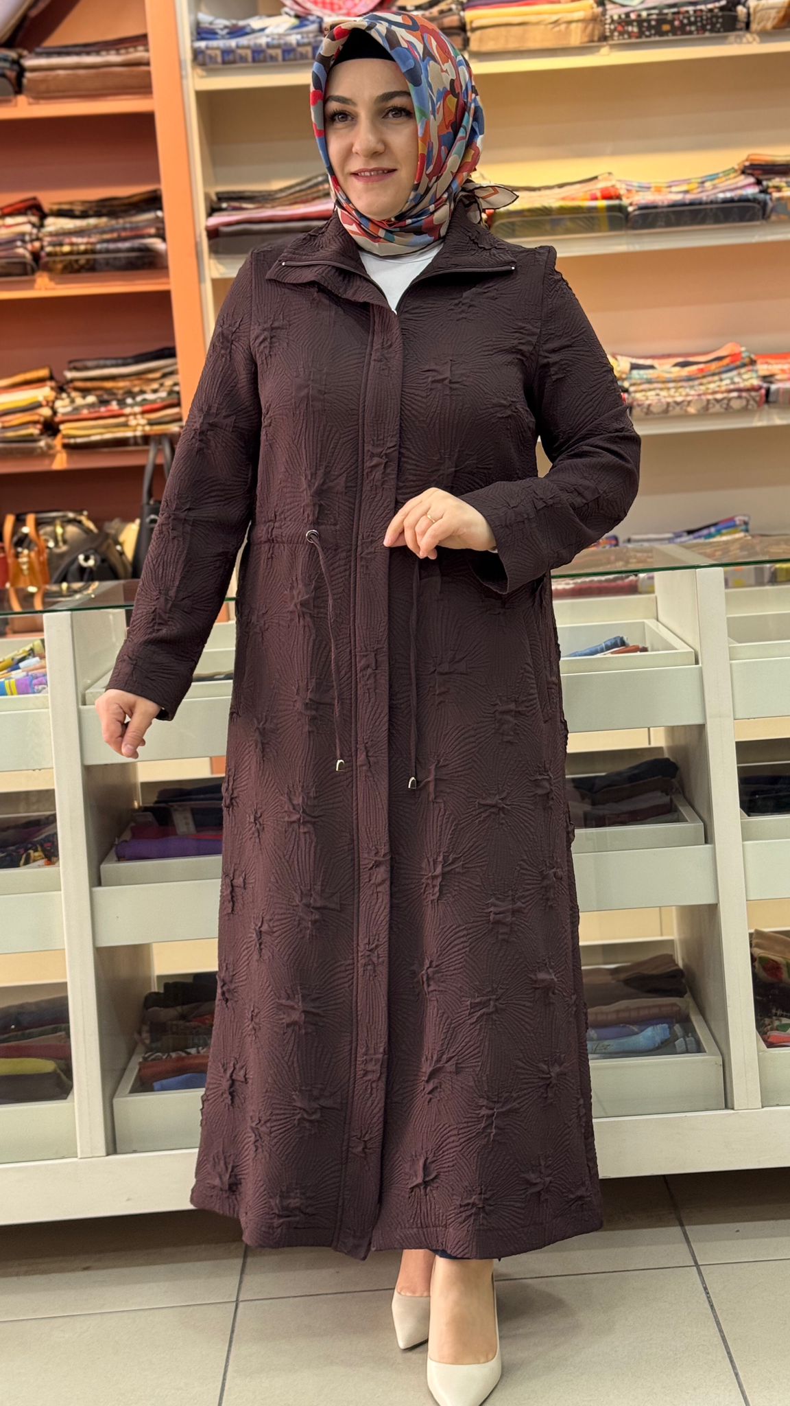 Belden Büzgü Detaylı Dik Yaka Kap Kahverengi/4388