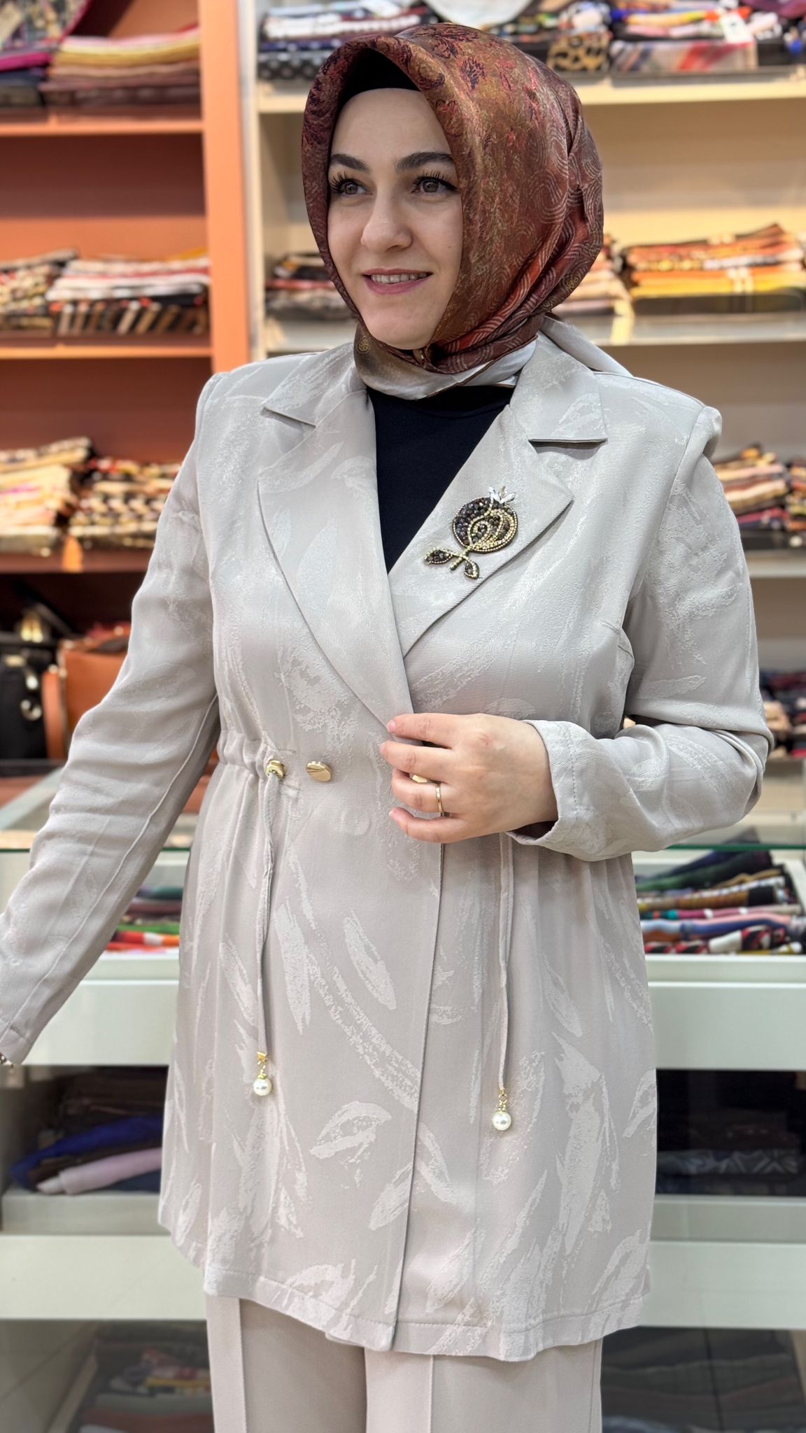 Beli Büzgü Ve Broş Detaylı Blazer Takım Taş / 3021
