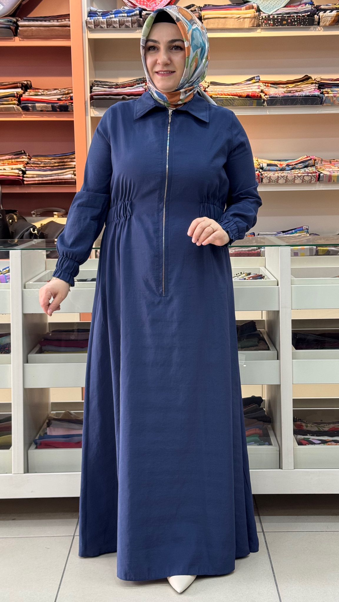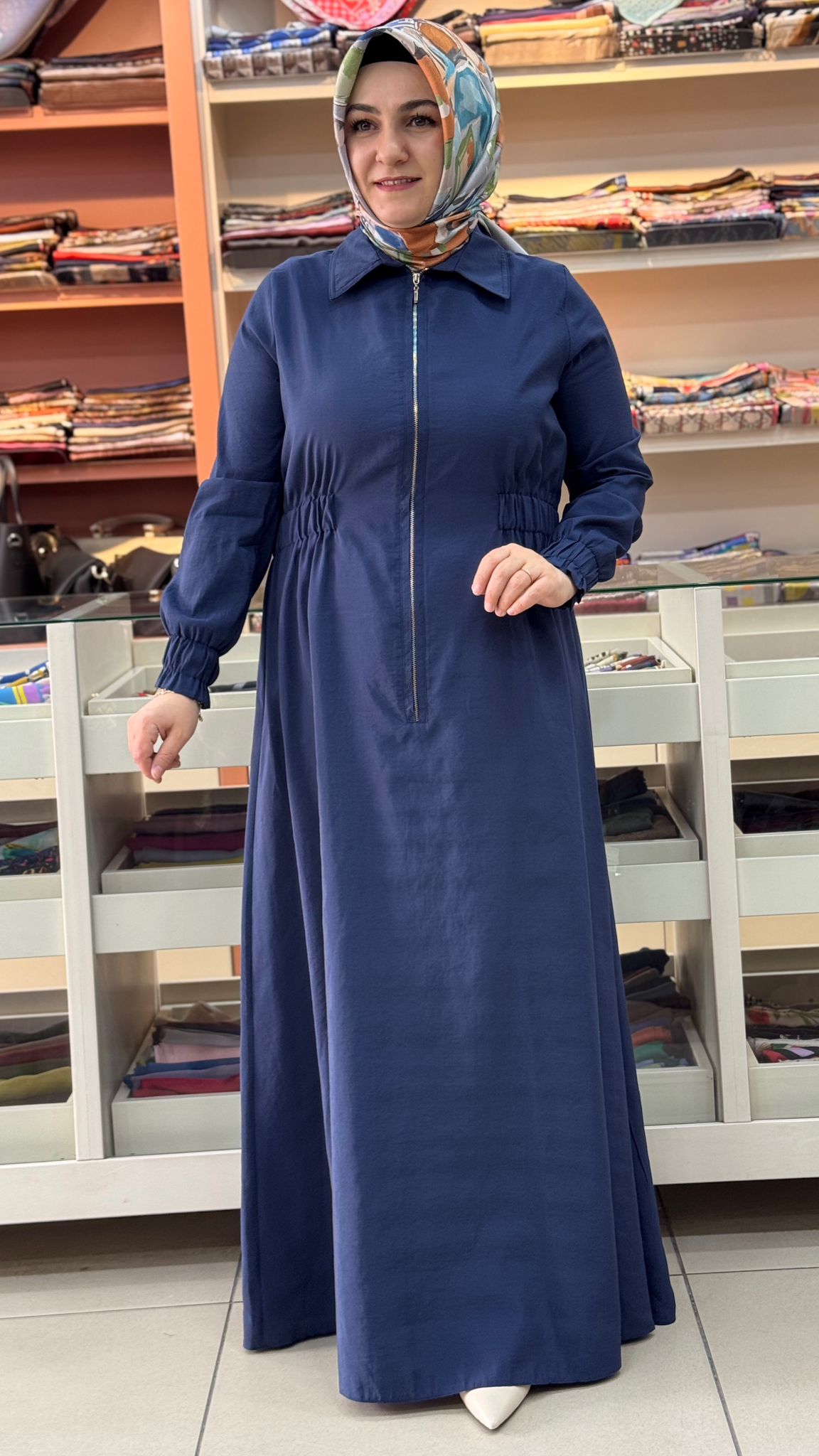 Beli Büzgülü Yarım Fermuarlı Elbise İndigo/2613506