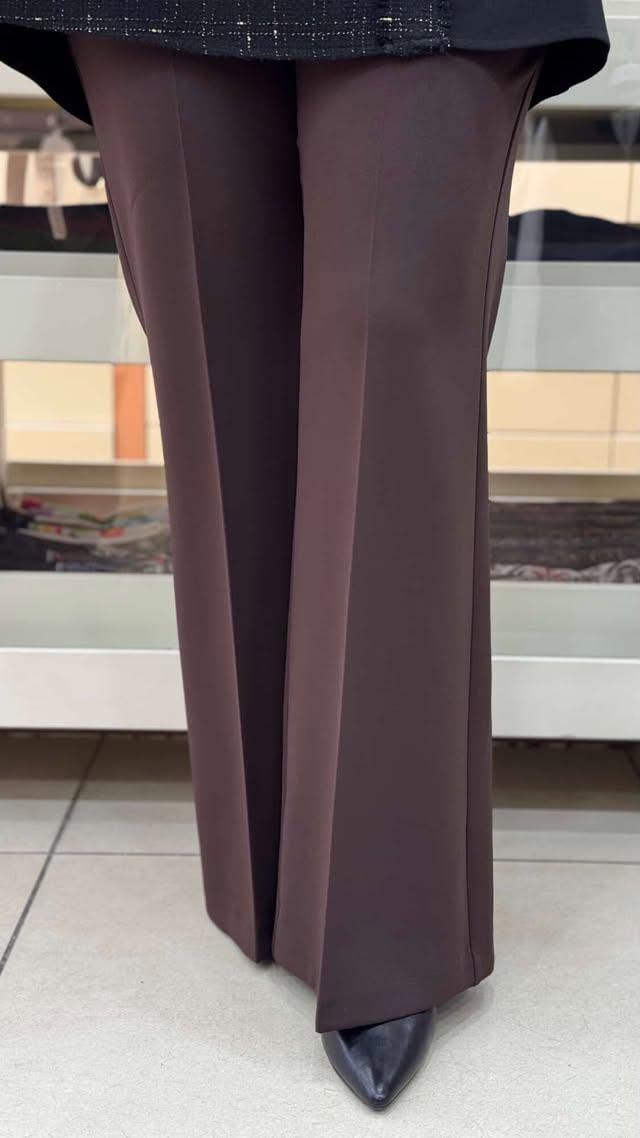 Beli Lastikli İspanyol Paça Pantolon Acı Kahve/1592