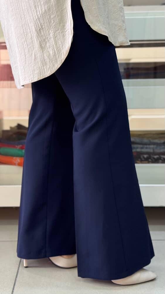 Beli Lastikli İspanyol Paça Pantolon Lacivert /1592