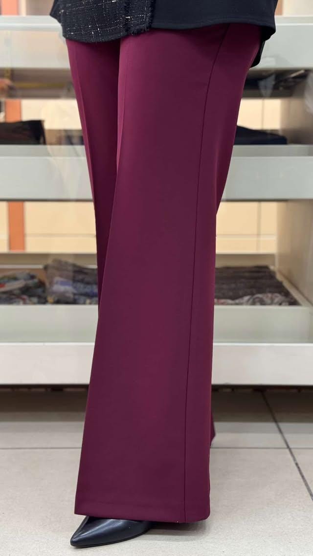 Beli Lastikli İspanyol Paça Pantolon Bordo/1592