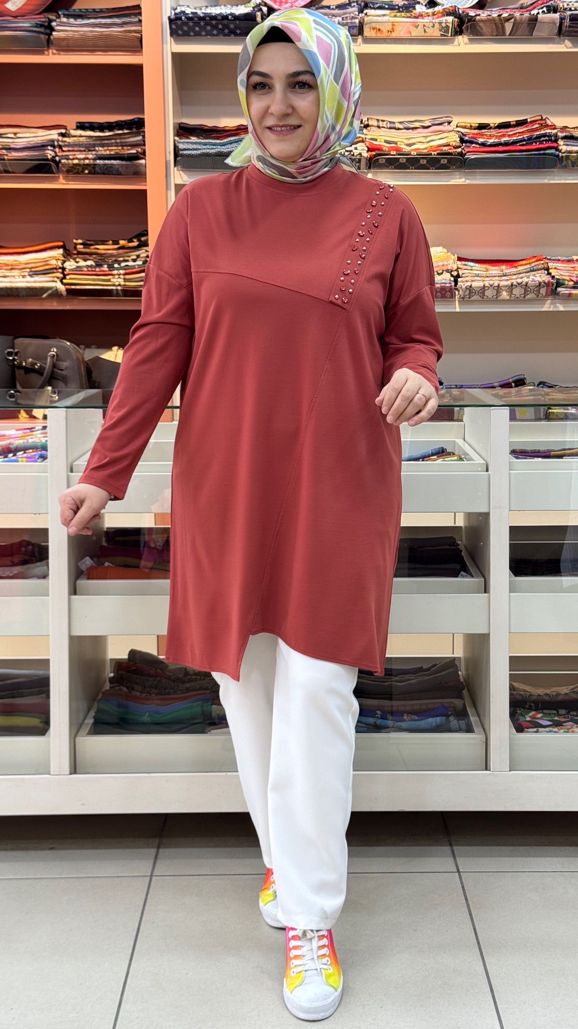 Boncuk Çakmalı Asimetrik Tunik Kiremit/30342