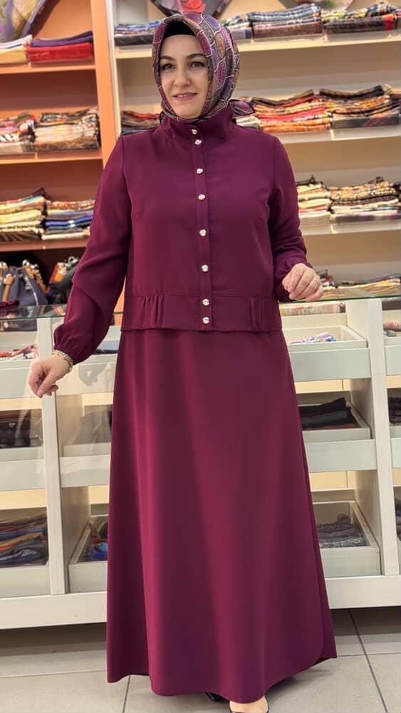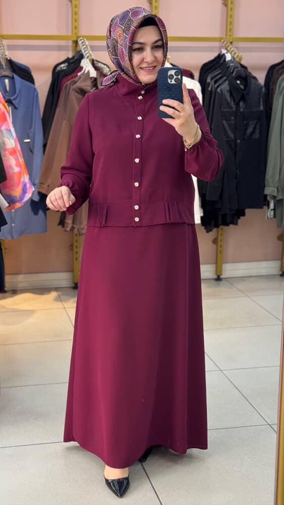 Büzgü Ve Düğme Detyalı Ceketli Takım Bordo/27140