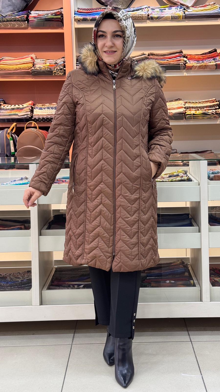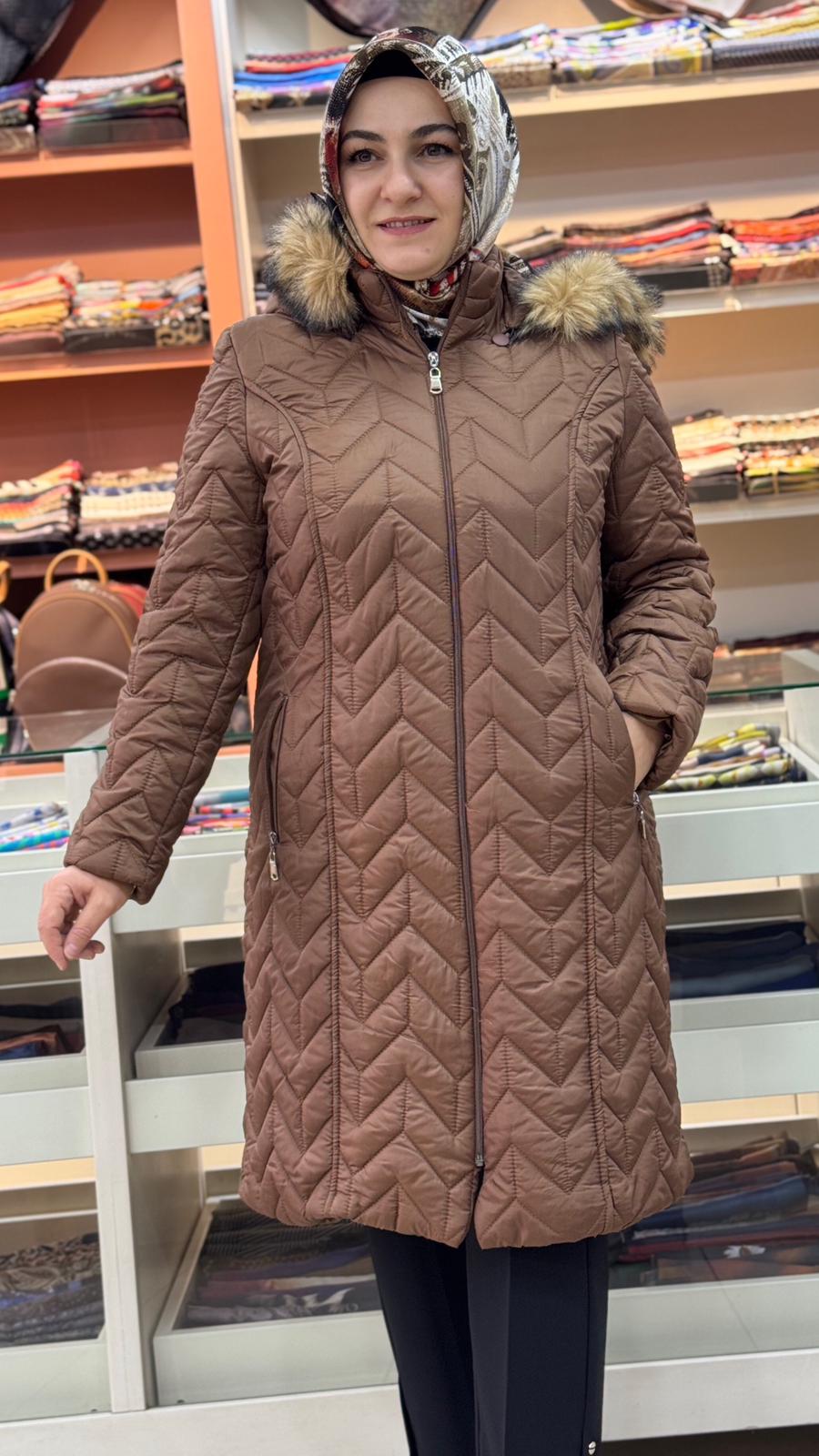 Çavuş Desenli Kısa Şişme Kaban Taba/6105