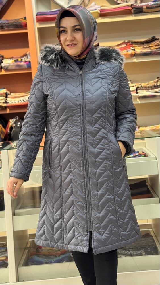 Çavuş Desenli Kısa Şişme Kaban Gri/6105