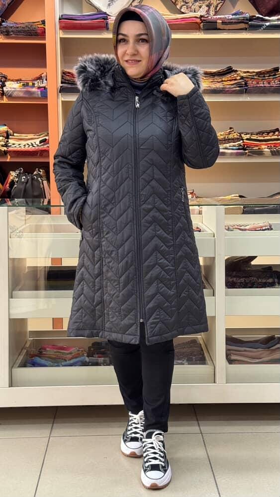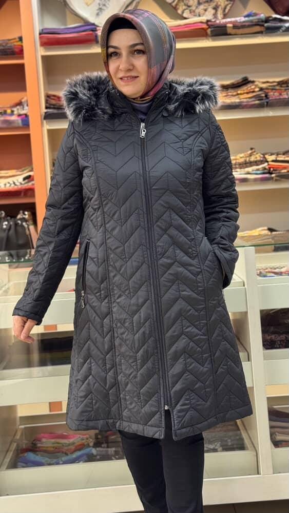 Çavuş Desenli Kısa Şişme Kaban Siyah/6105