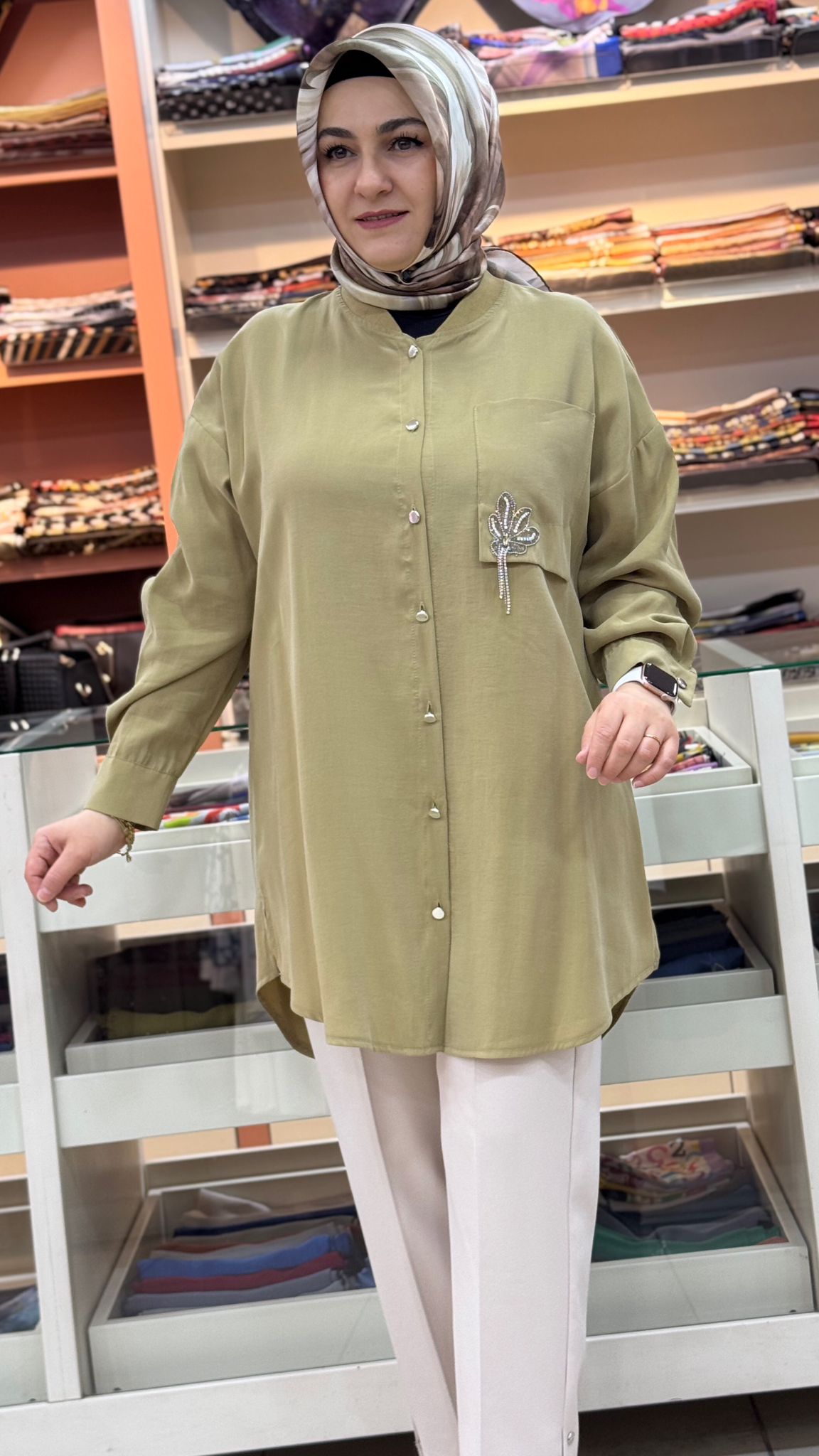 Cebi Taş Detaylı Düğmeli Tunik Fıstık Yeşili/10763