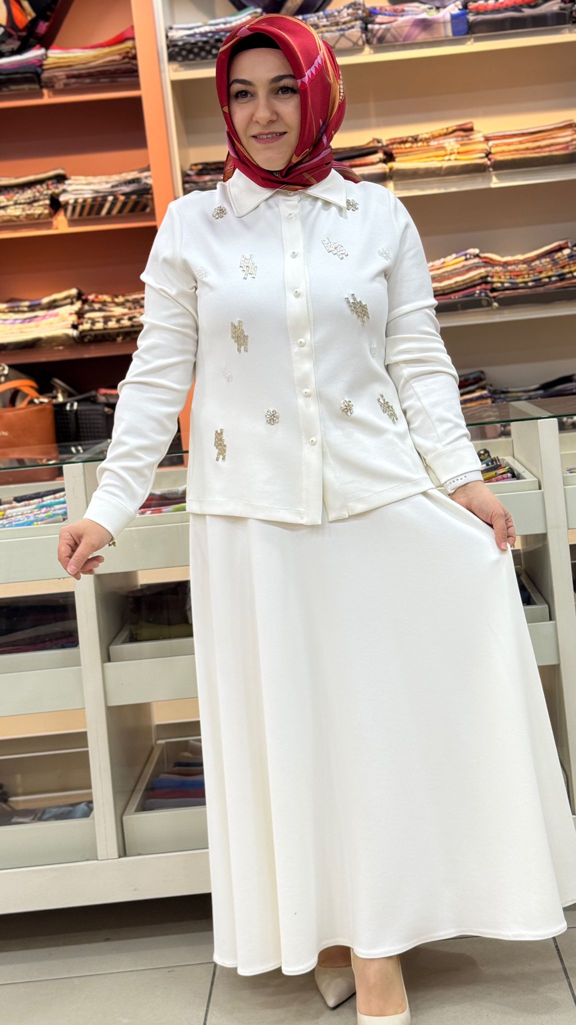 - Takımımızın bluzumuz boy uzunluğu 60 cm , eteğimizin boy uzunluğu 100 cm'dir.