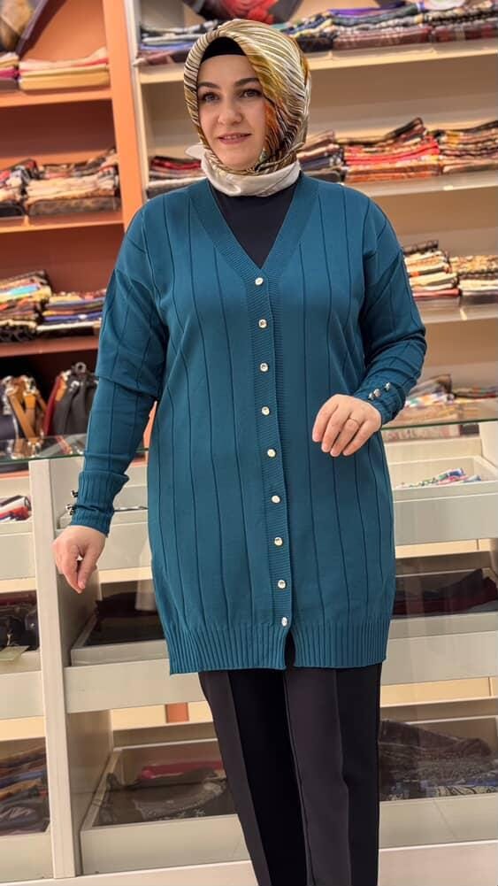 Çizgi Detaylı Triko Hırka Petrol/3199