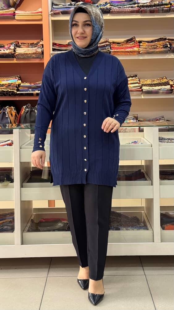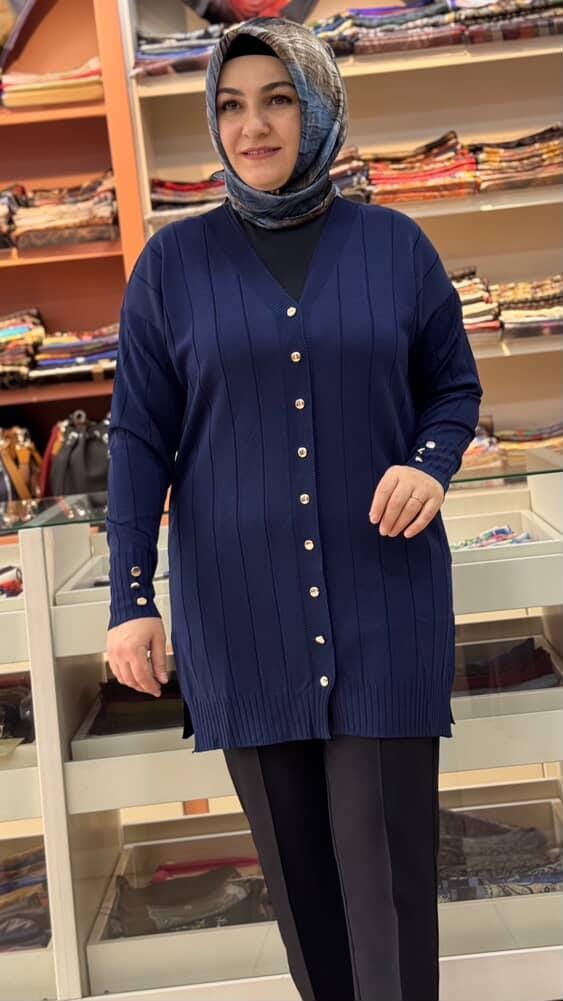 Çizgi Detaylı Triko Hırka Lacivert/3199