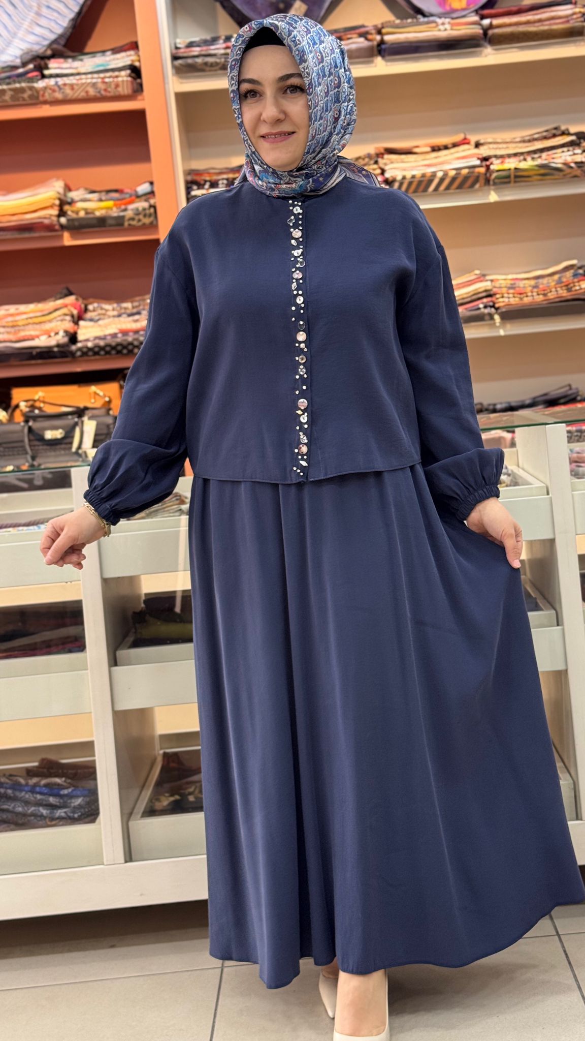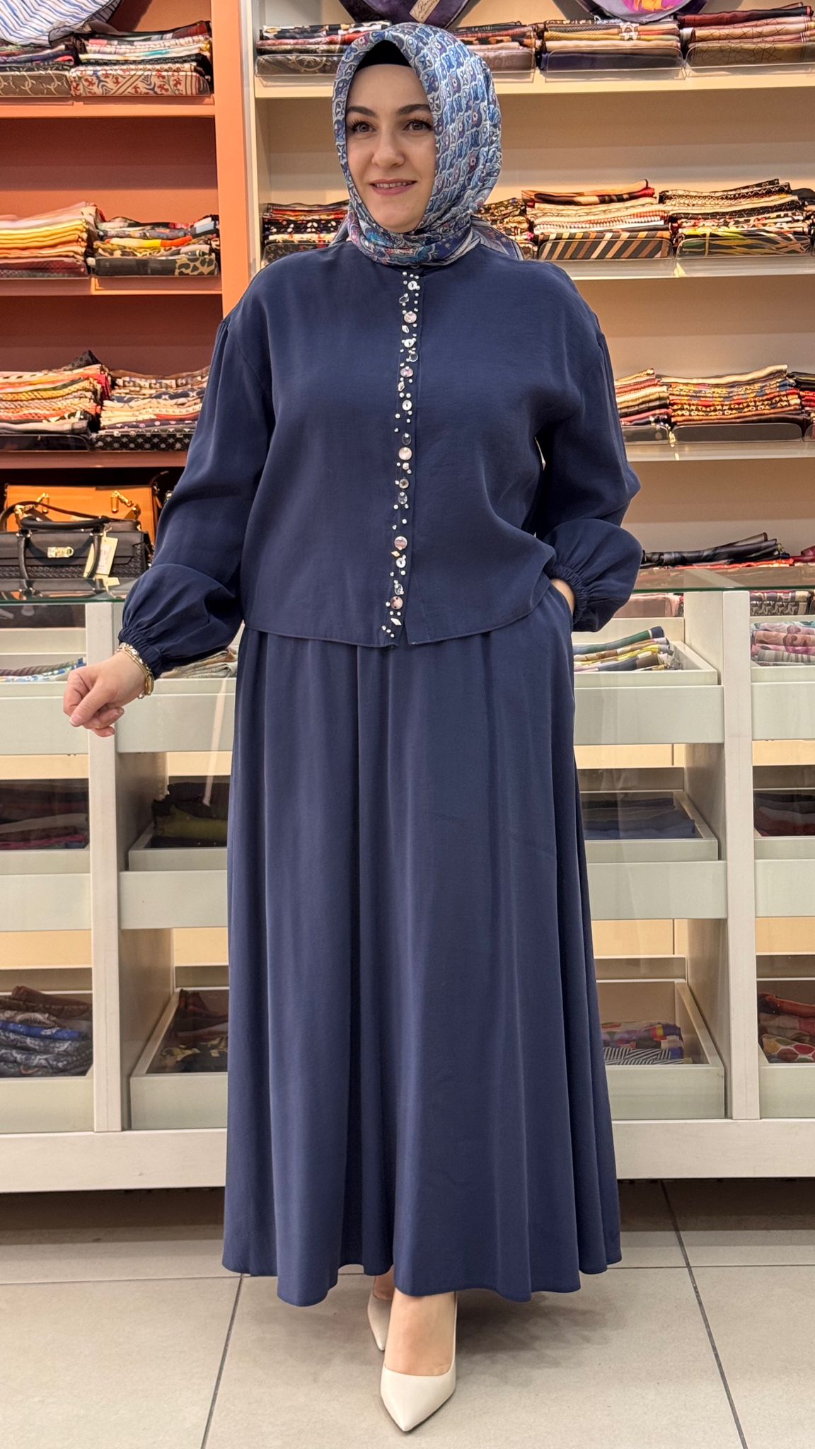 • - Takımımızın gömleğinin boy uzunluğu 55 cm , eteğimizin boy uzunluğu 93 cm'dir.