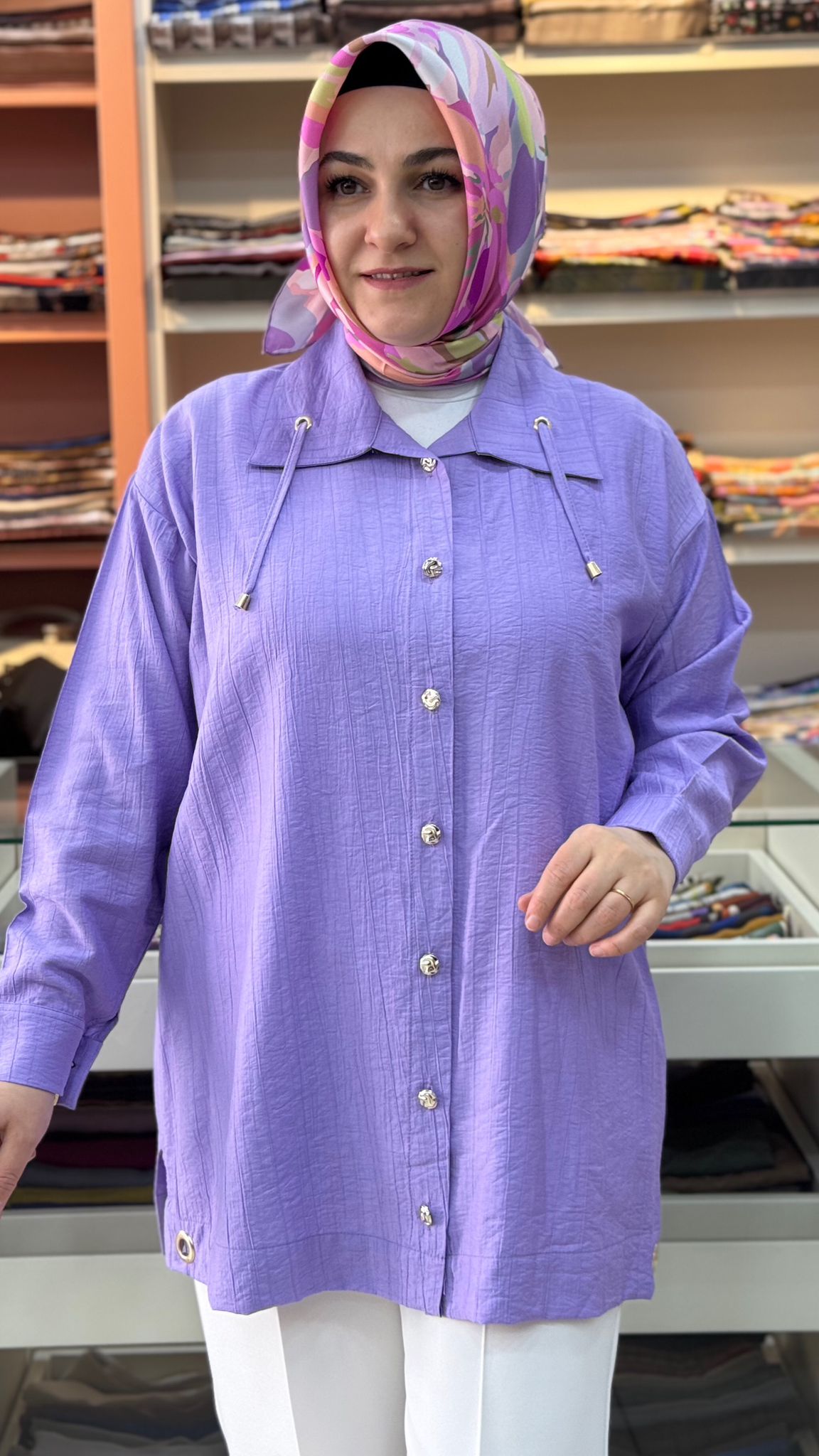 Dik Yaka İp Detaylı Tunik Lila/1965