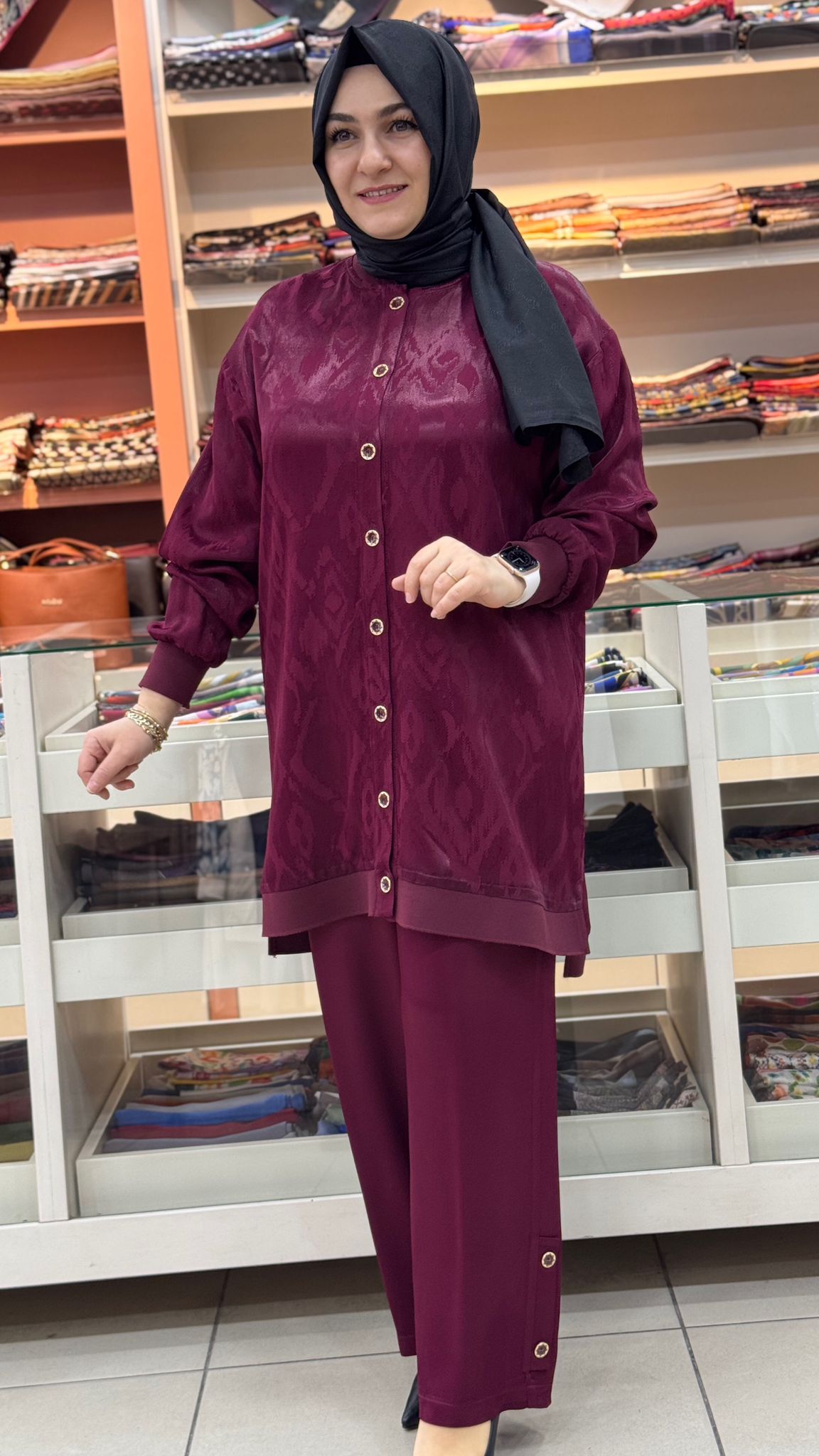 Düğme Detaylı Jakarlı Takım Bordo/6218