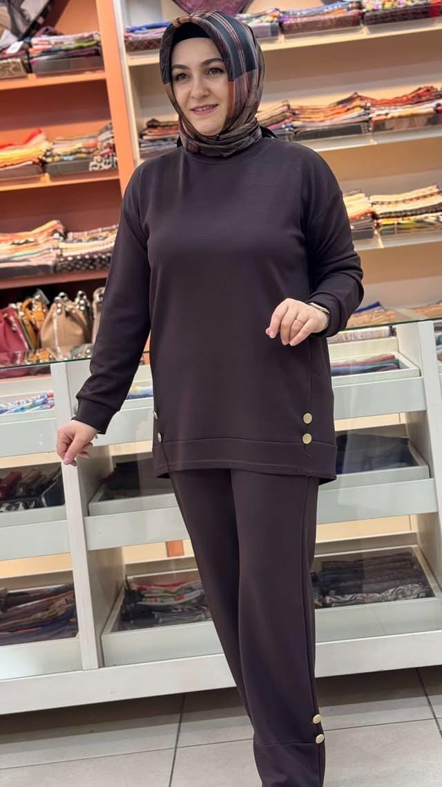 Düğme Ve Dikiş Detaylı Takım Acı Kahve/1628