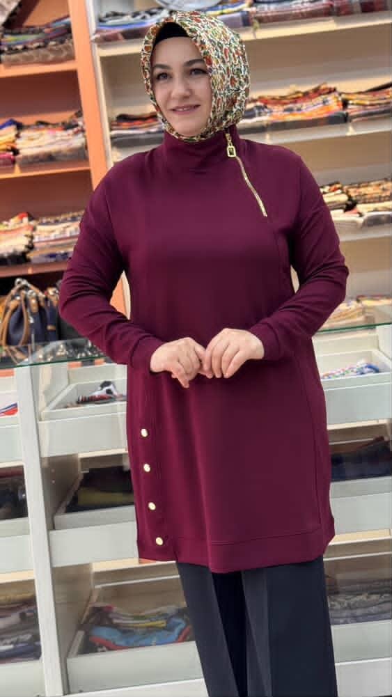 Etek Ucu Çıt Çıt Detaylı Tunik Bordo/257668