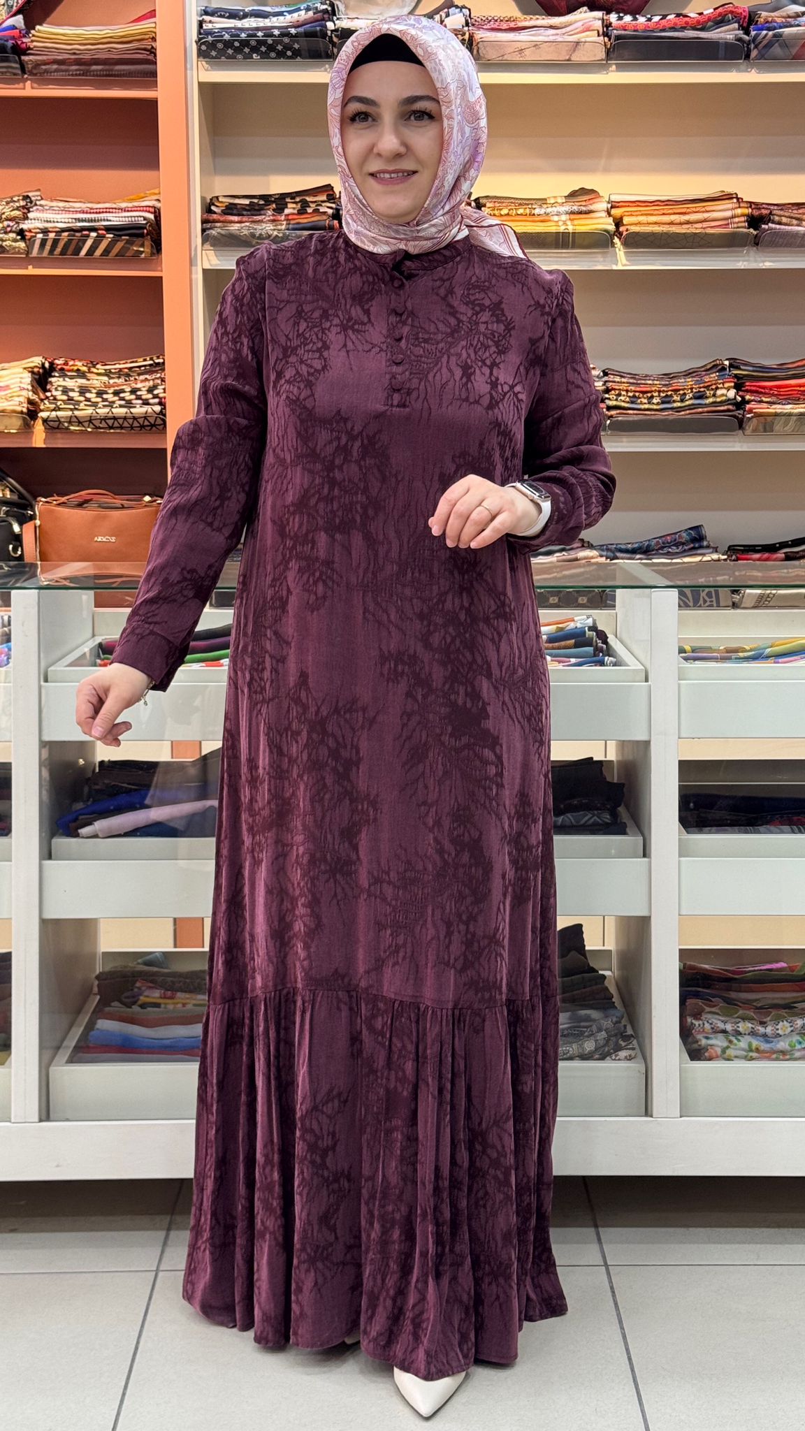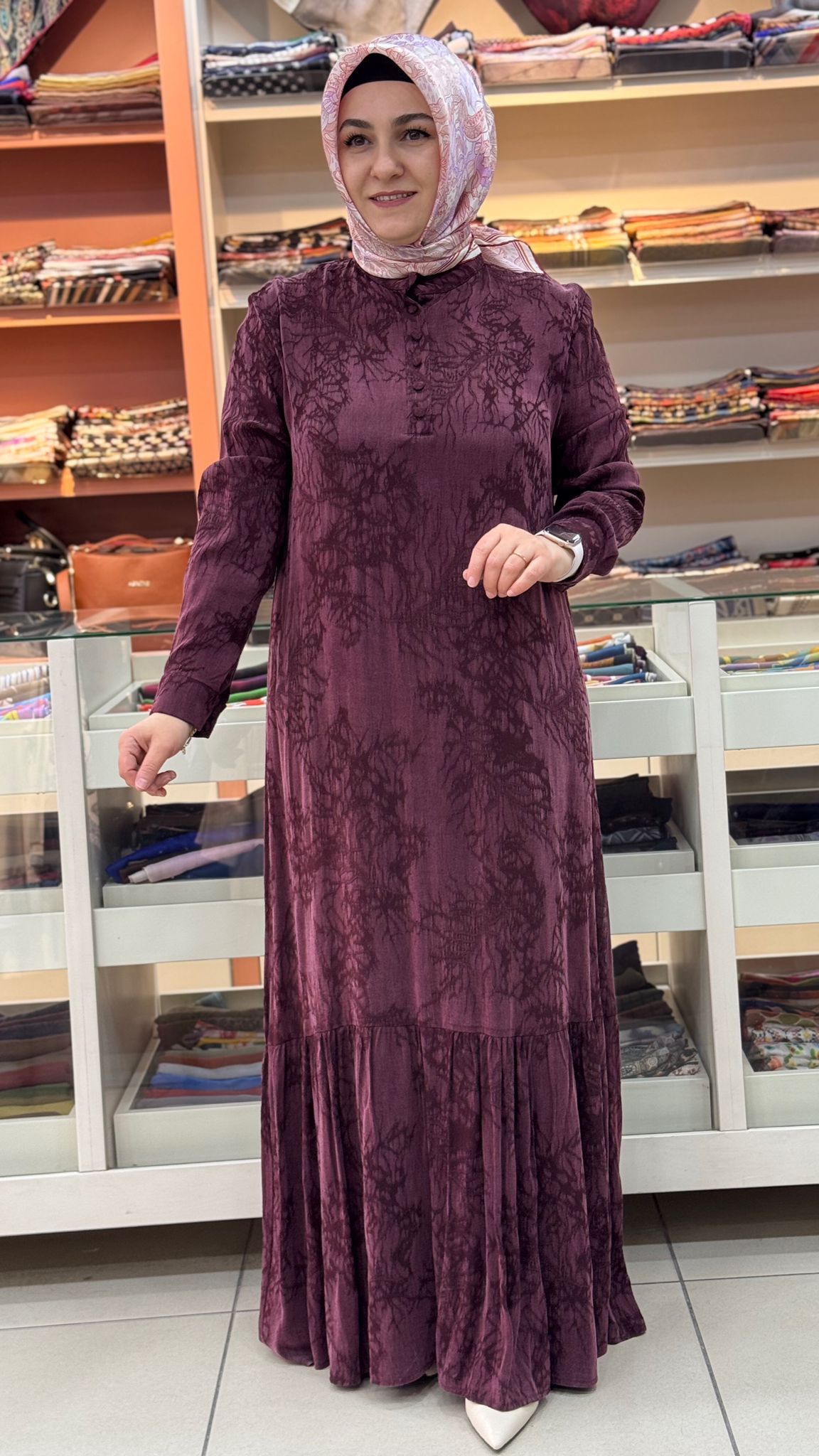 Etek Ucu Fırfırlı Beli Bağlamalı Cupra Elbise Bordo/26307