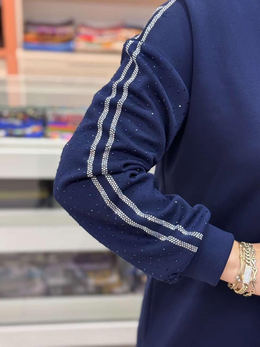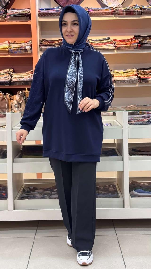 Flar Detaylı Kolları Taşlı Tunik Lacivert/170269