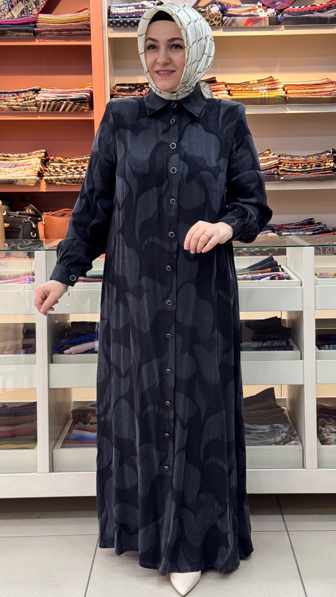 Gömlek Yaka Düğme Detaylı Cupra Elbise Siyah / 26305