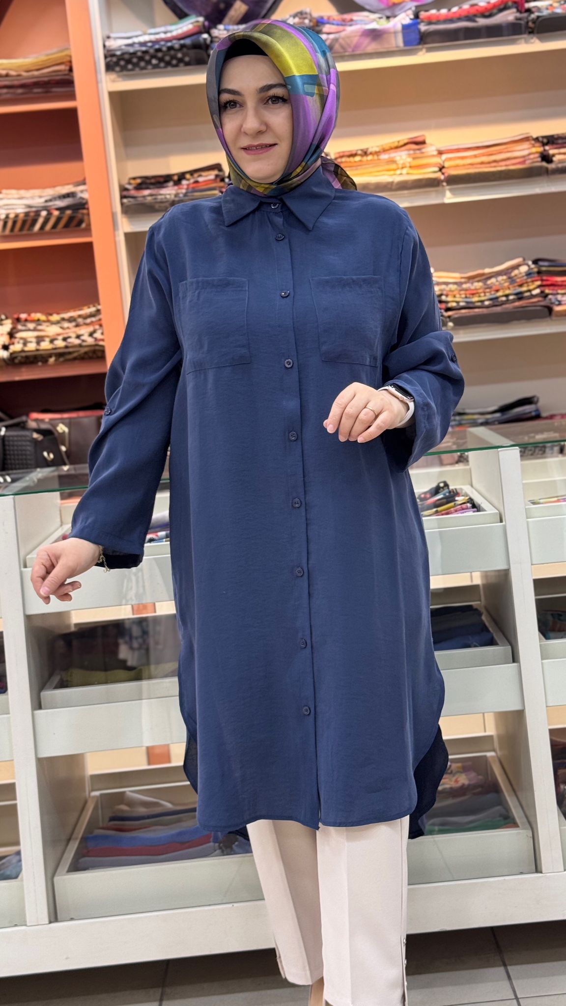 Gömlek Yaka Yırtmaçlı Uzun Tunik Lacivert/10764