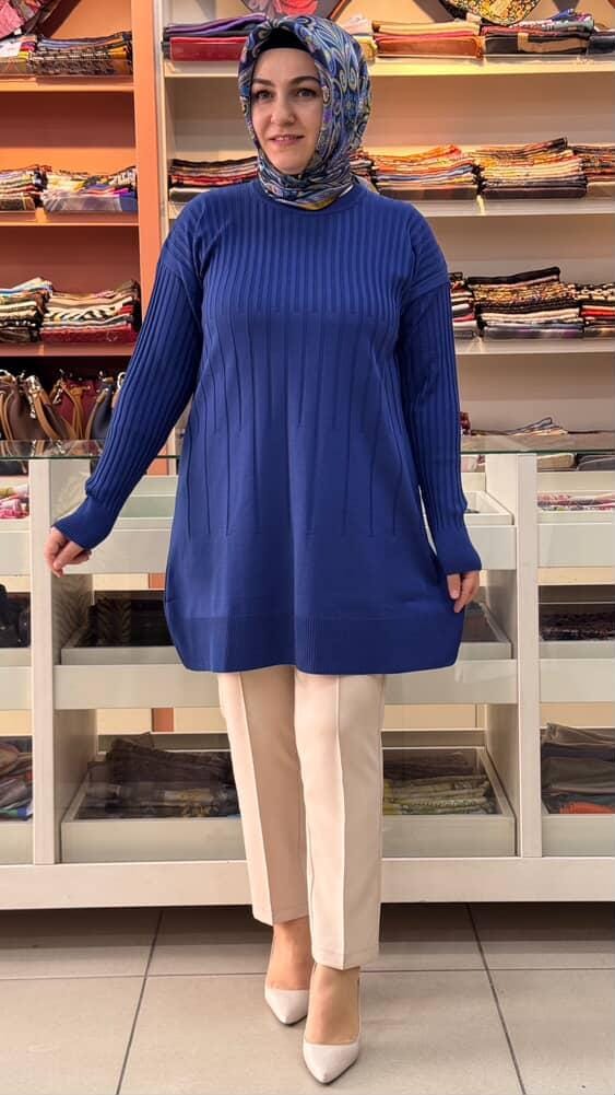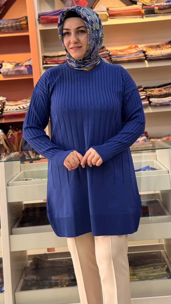 İnce Çizgili Merserize Triko Tunik Saks/1825