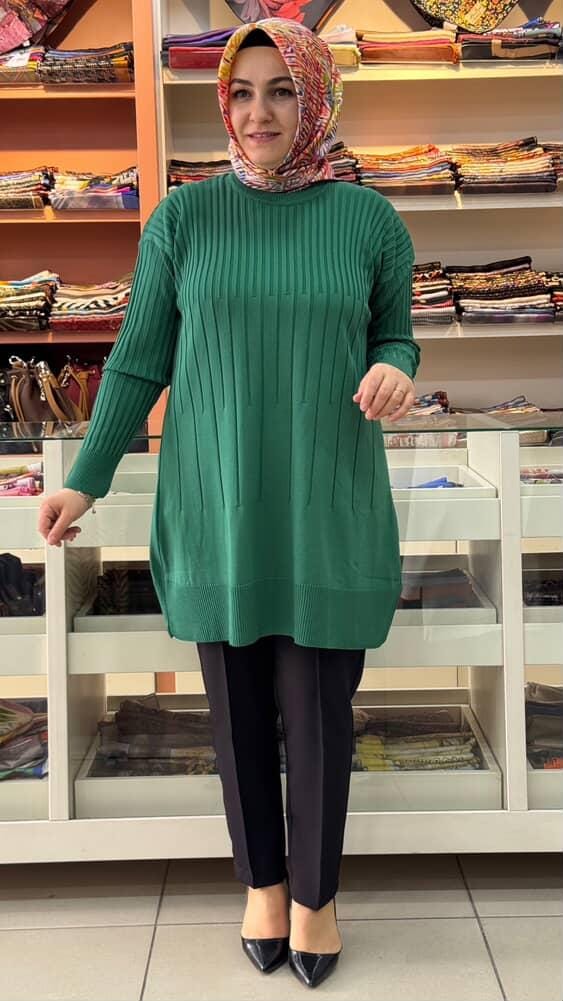 İnce Çizgili Merserize Triko Tunik Benetton Yeşili /1825