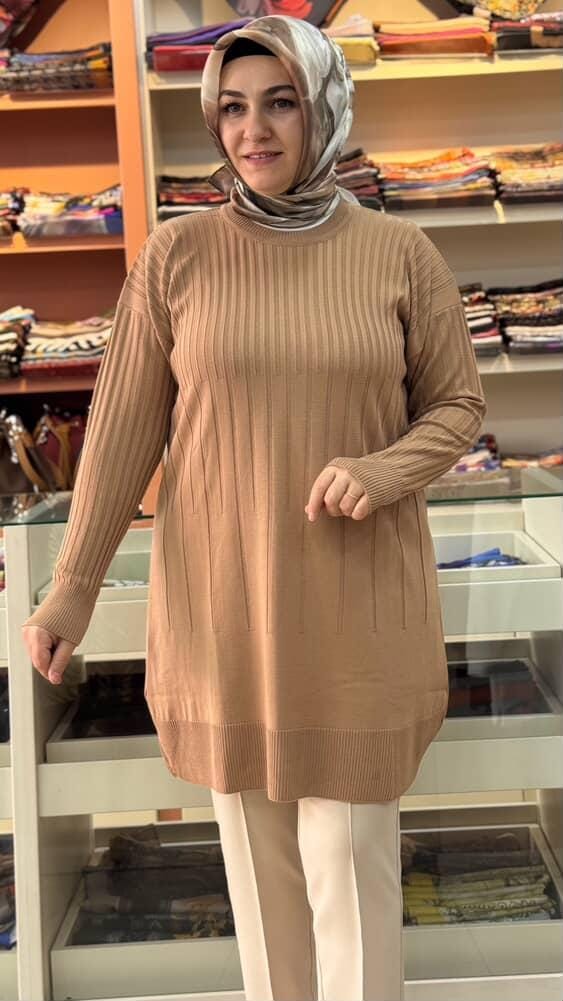 İnce Çizgili Merserize Triko Tunik Bisküvi/1825