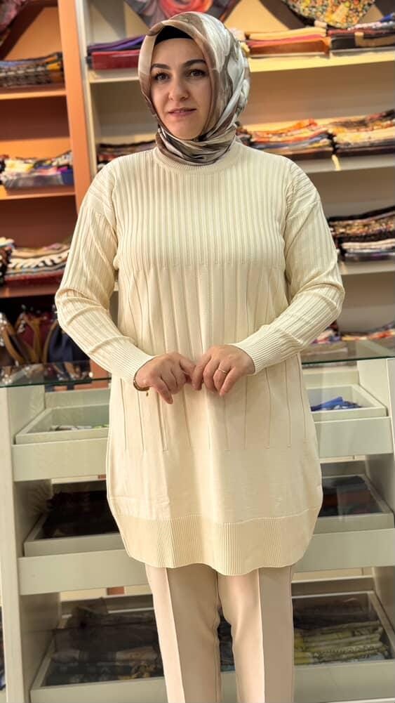 İnce Çizgili Merserize Triko Tunik Taş/1825