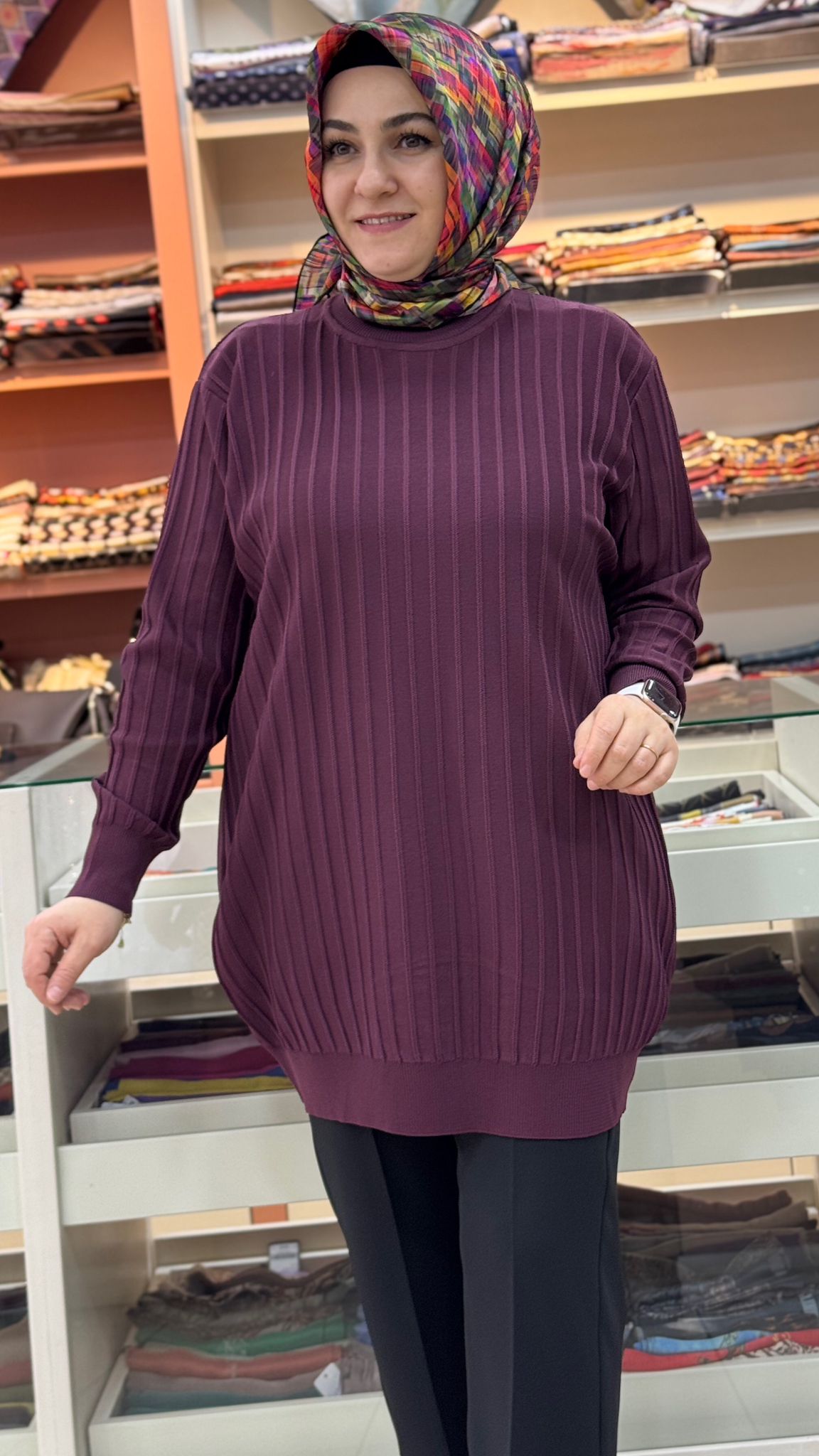 Kalın Çizgili Triko Tunik Mürdüm/3185
