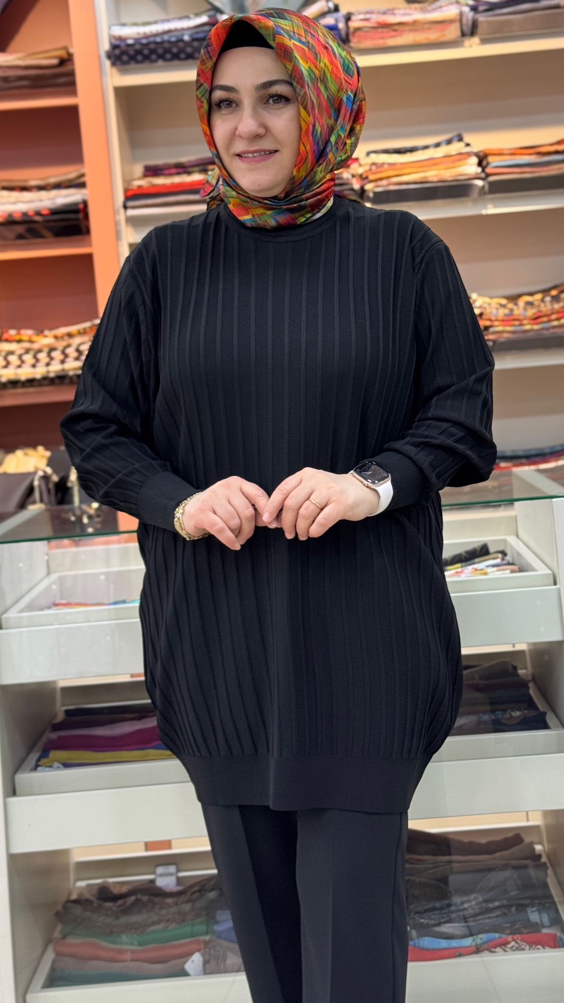 Kalın Çizgili Triko Tunik Siyah/3185