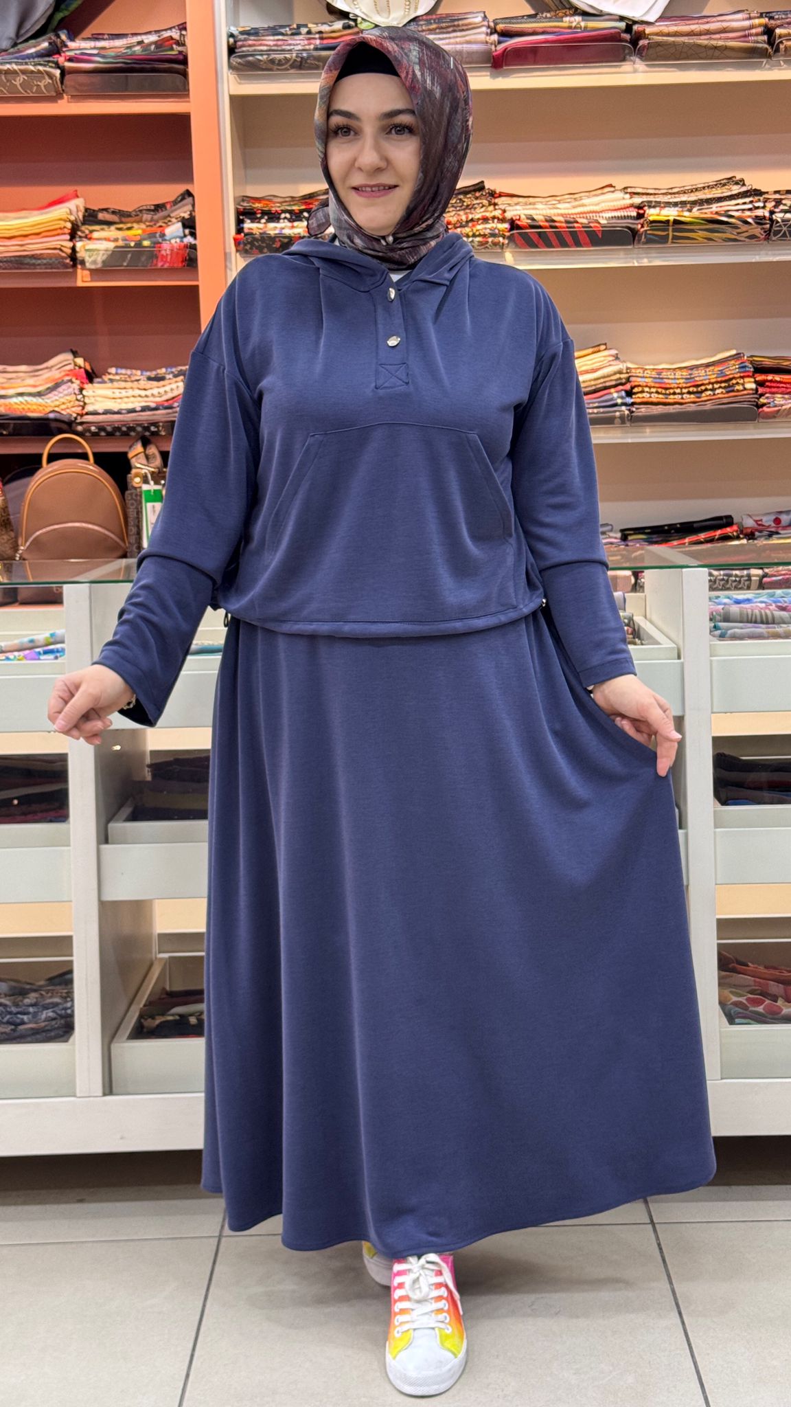 Kanguru Cepli Kapşonlu Etekli Takım Lacivert/120351
