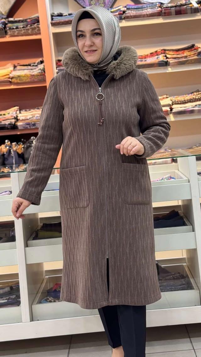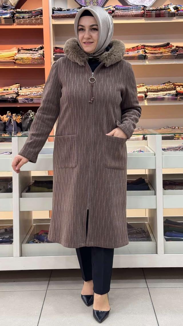 Kapşonu Kürklü Kap Kahverengi/9257