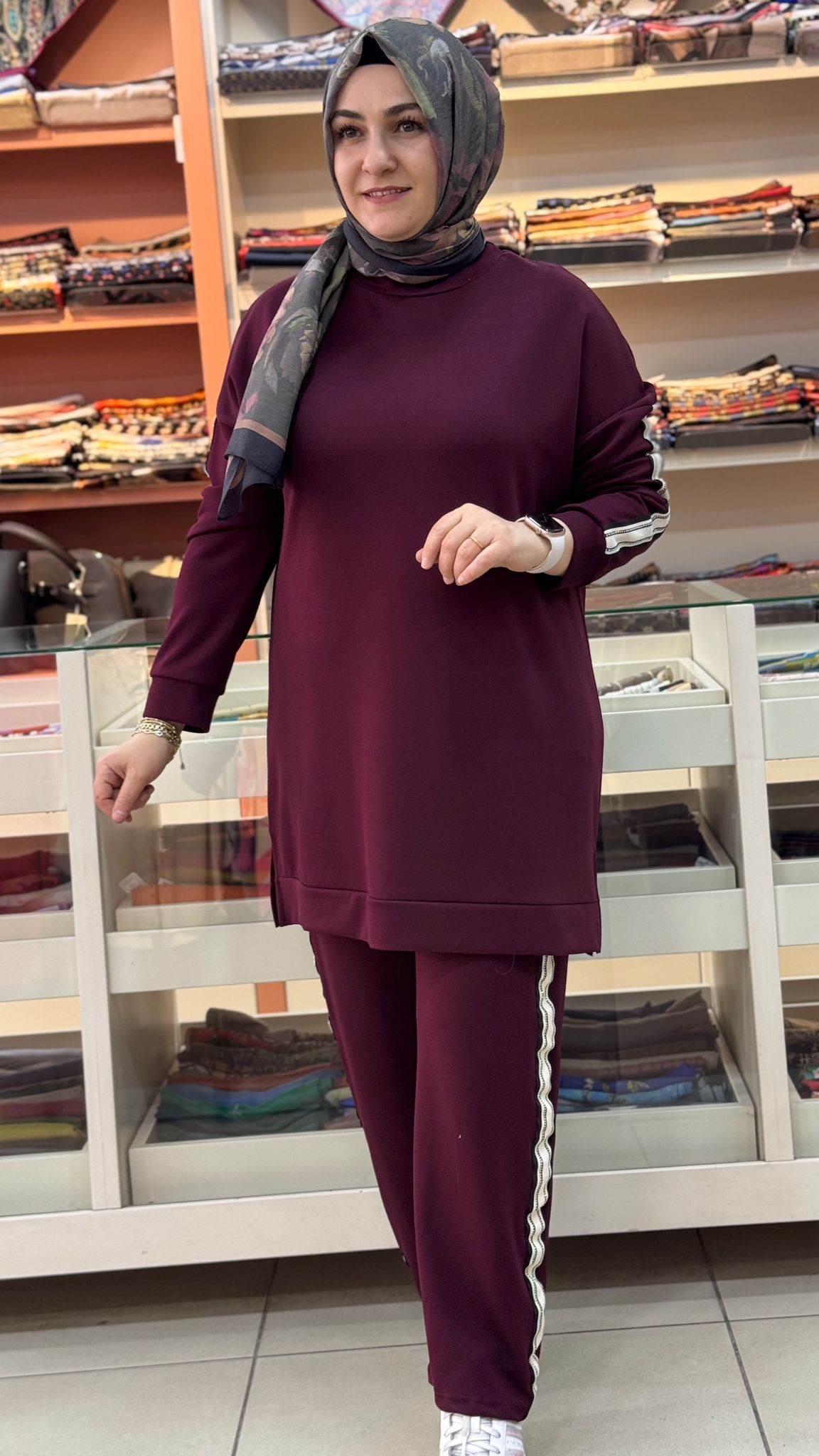 • - Takımımızın tuniğinin boy uzunluğu 85 cm , pantolonumuzun boy uzunluğu 103 cm'dir.
