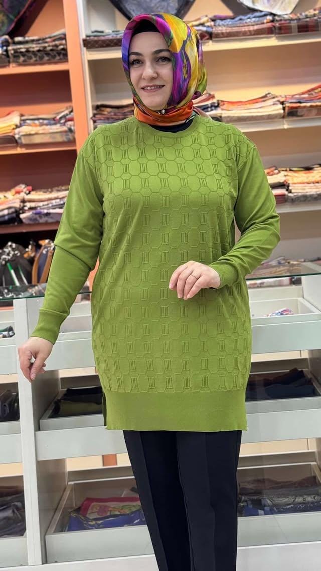 Kendinden Desenli Triko Tunik Yeşil/1871