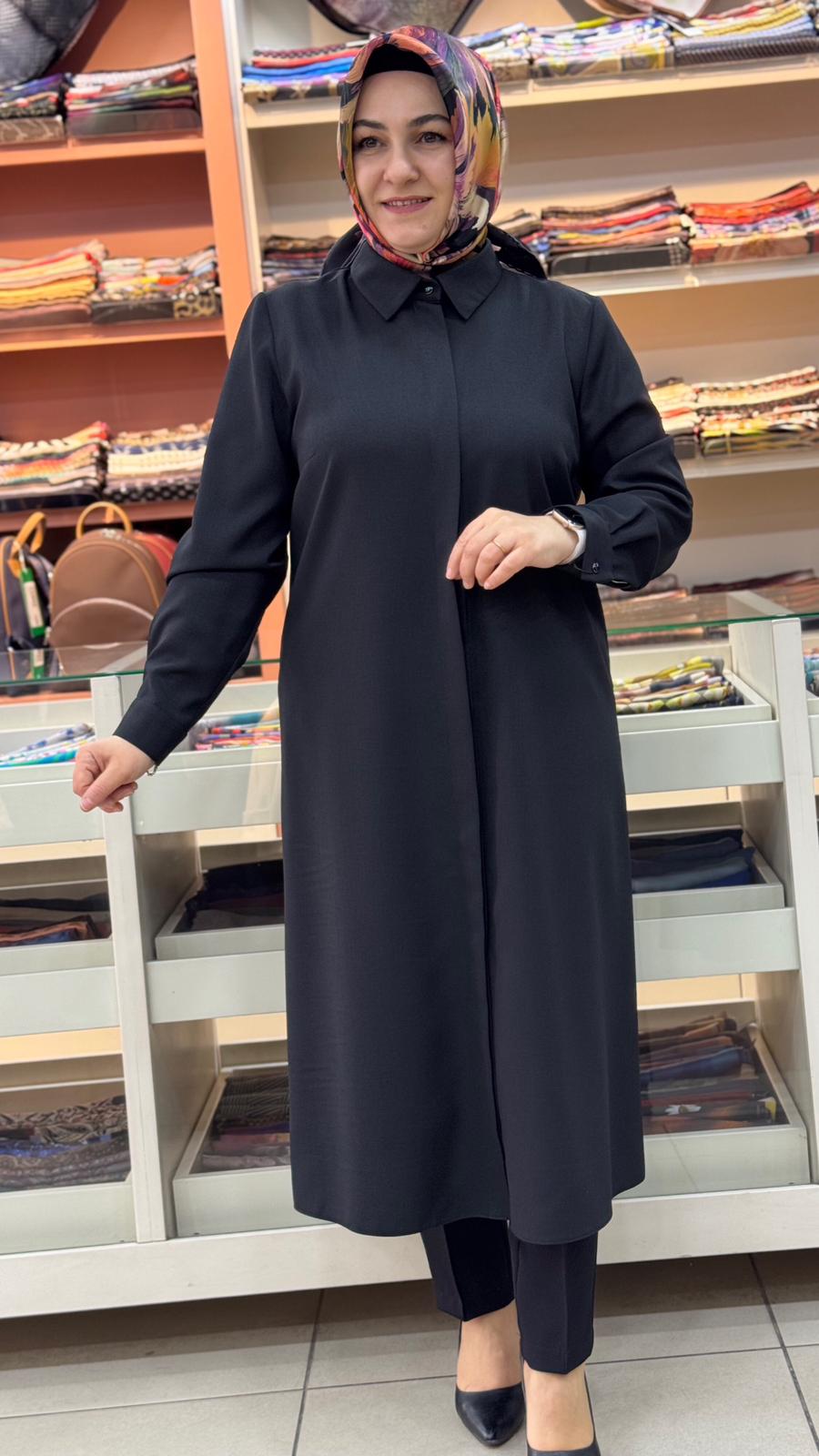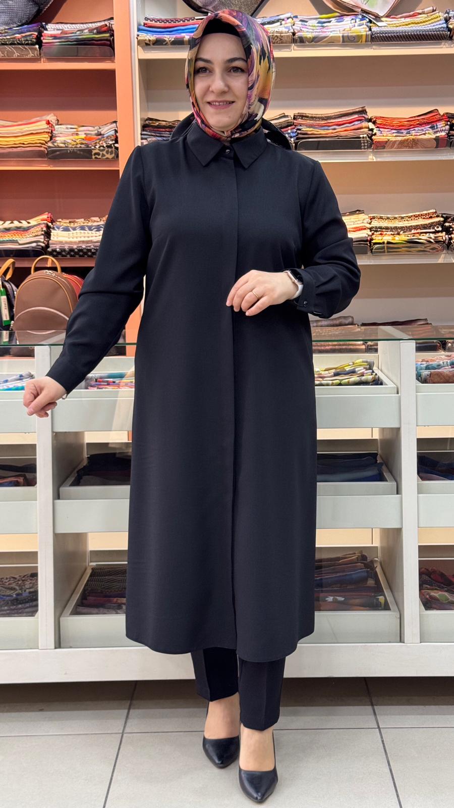 Keten Görünümlü Basic Uzun Tunik Siyah/4209
