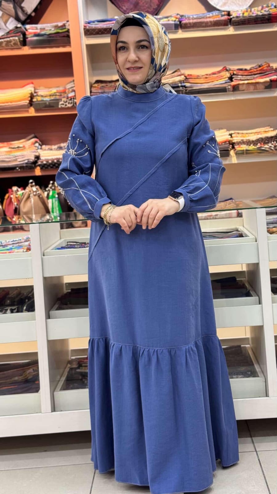 Kolları İnci Detaylı Elbise İndigo/5164