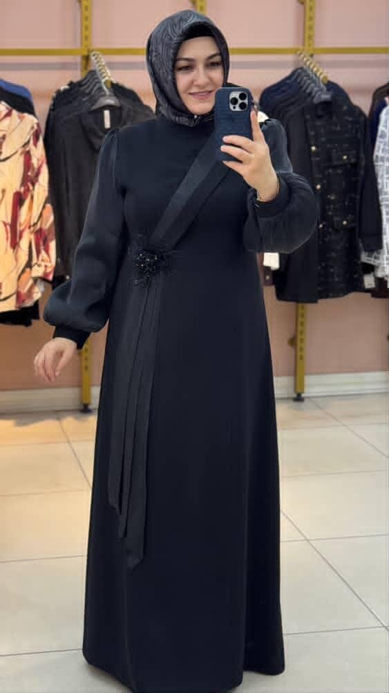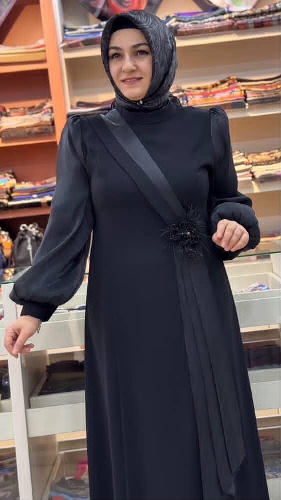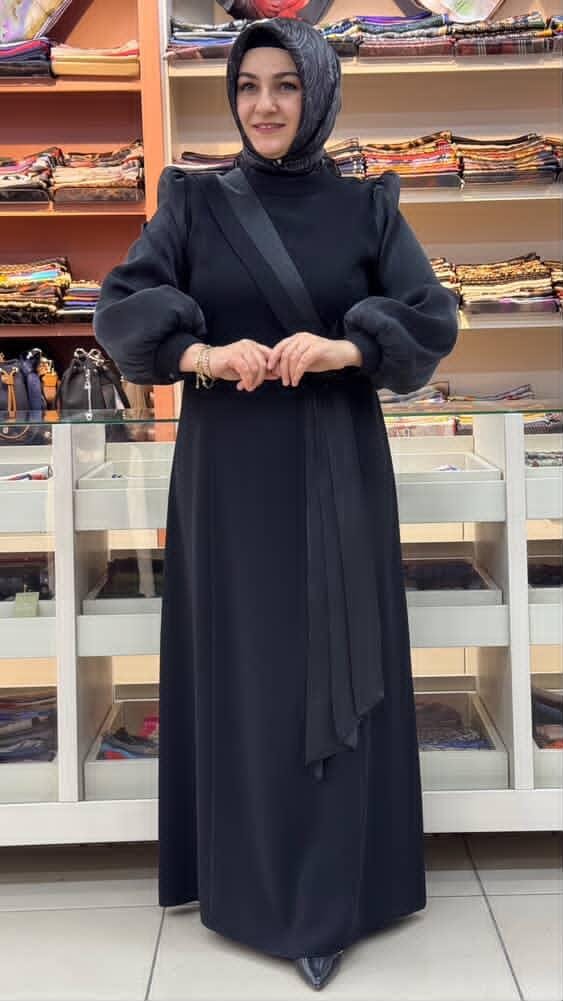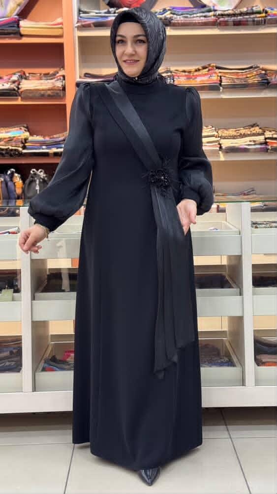 Kolları Organze Tül Detaylı Abiye Siyah/5167