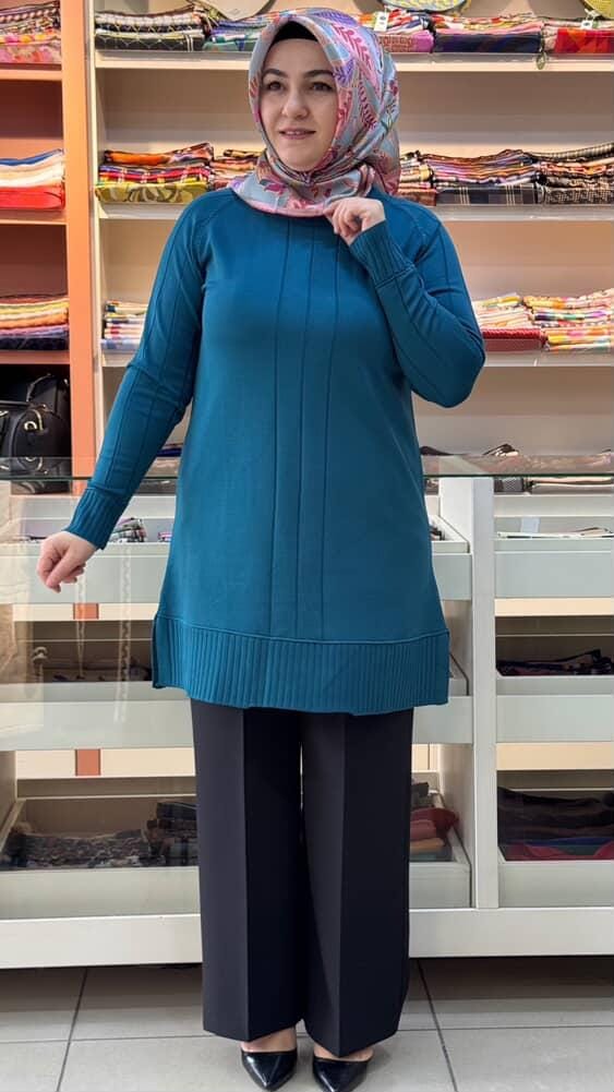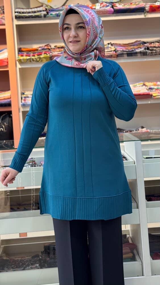 Kolları Ve Önü Çizgi Detaylı Triko Tunik Petrol/3189
