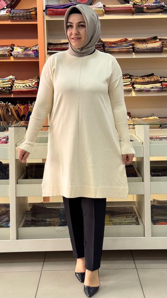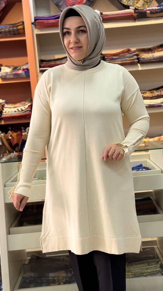 Kolu Fermuarlı Merserize Triko Tunik Taş/1818