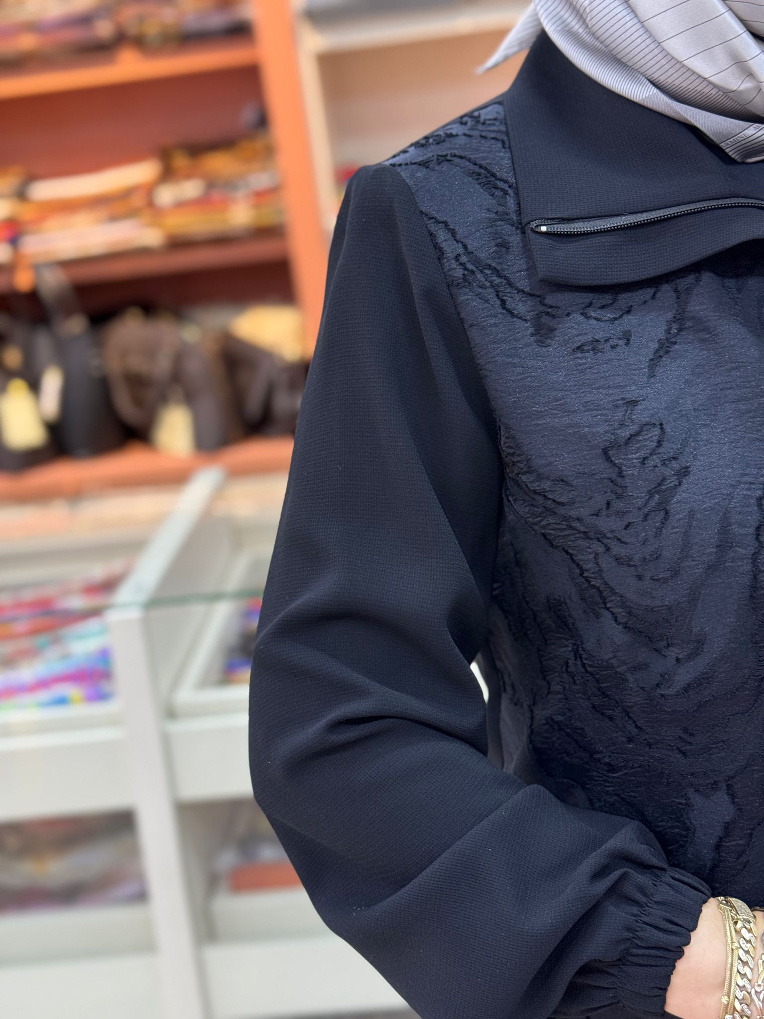 Önü Desenli Dik Yaka Ferace Siyah/9009