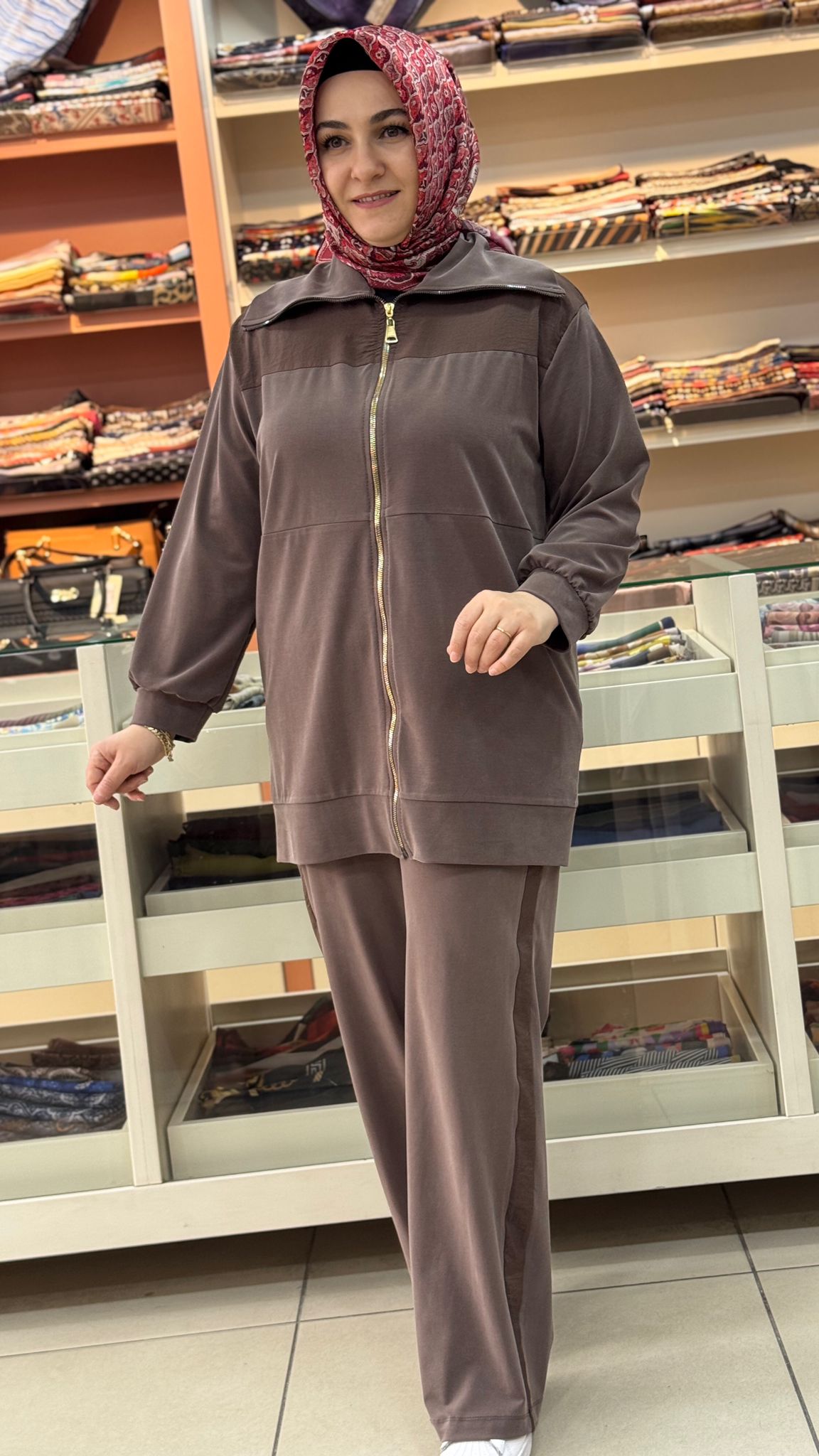 Paraşüt Detaylı Fermuarlı Pantolonlu Takım Kahverengi/144210