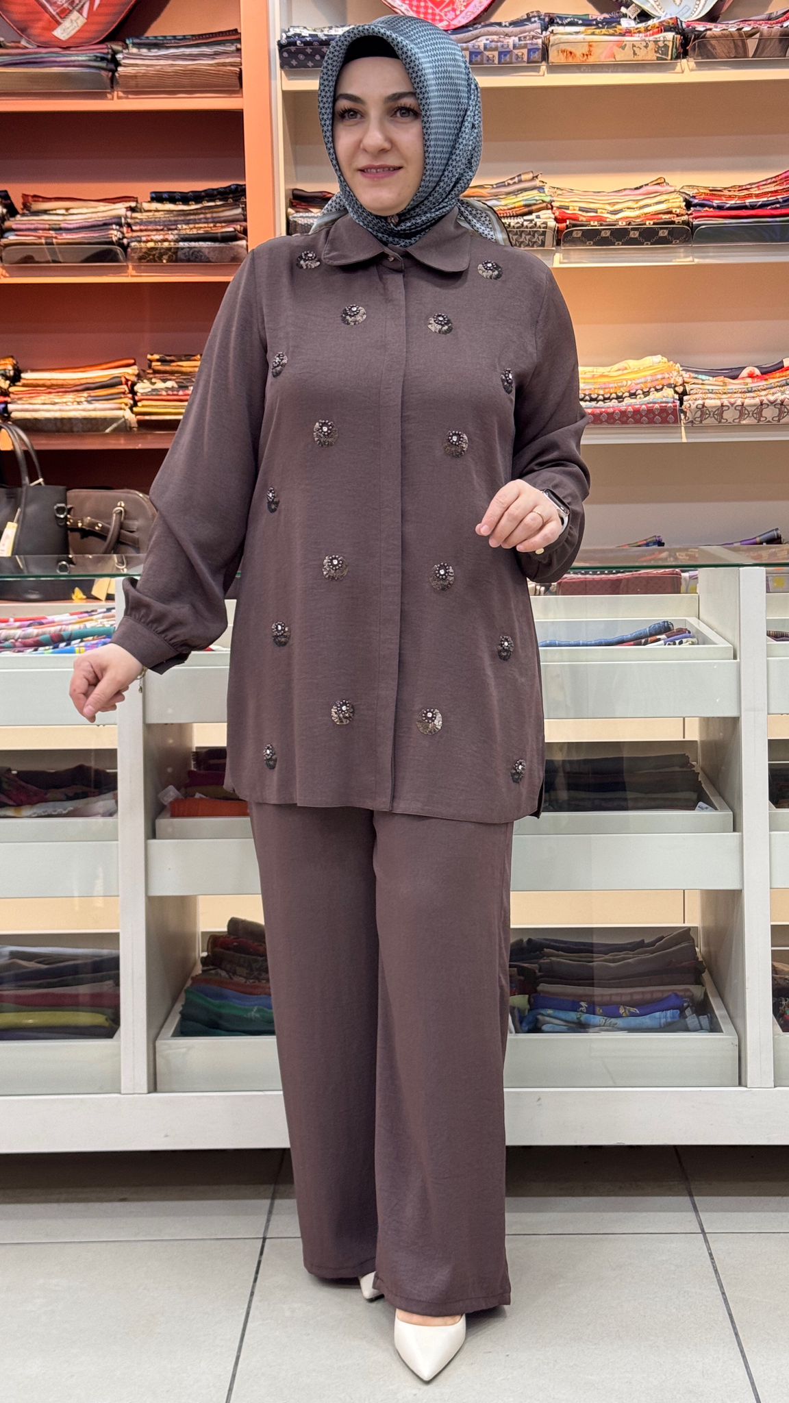 Pul Detaylı Pantolonlu Takım Kahverengi/1740