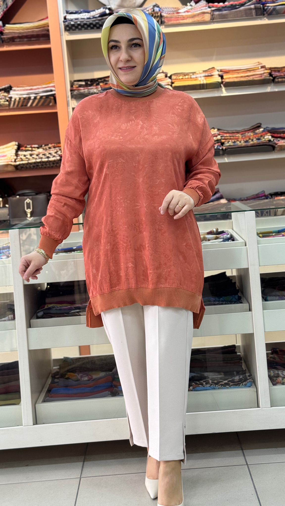 Ribana Detaylı Jakarlı Tunik Turuncu/262926