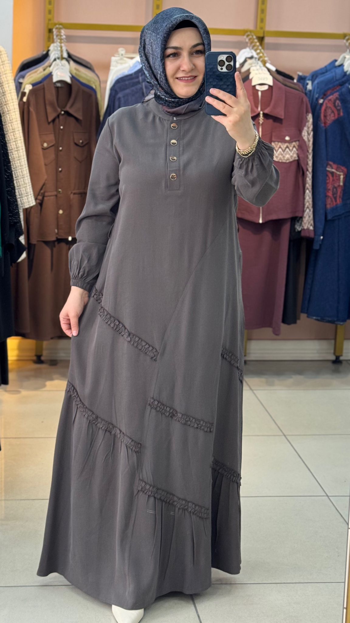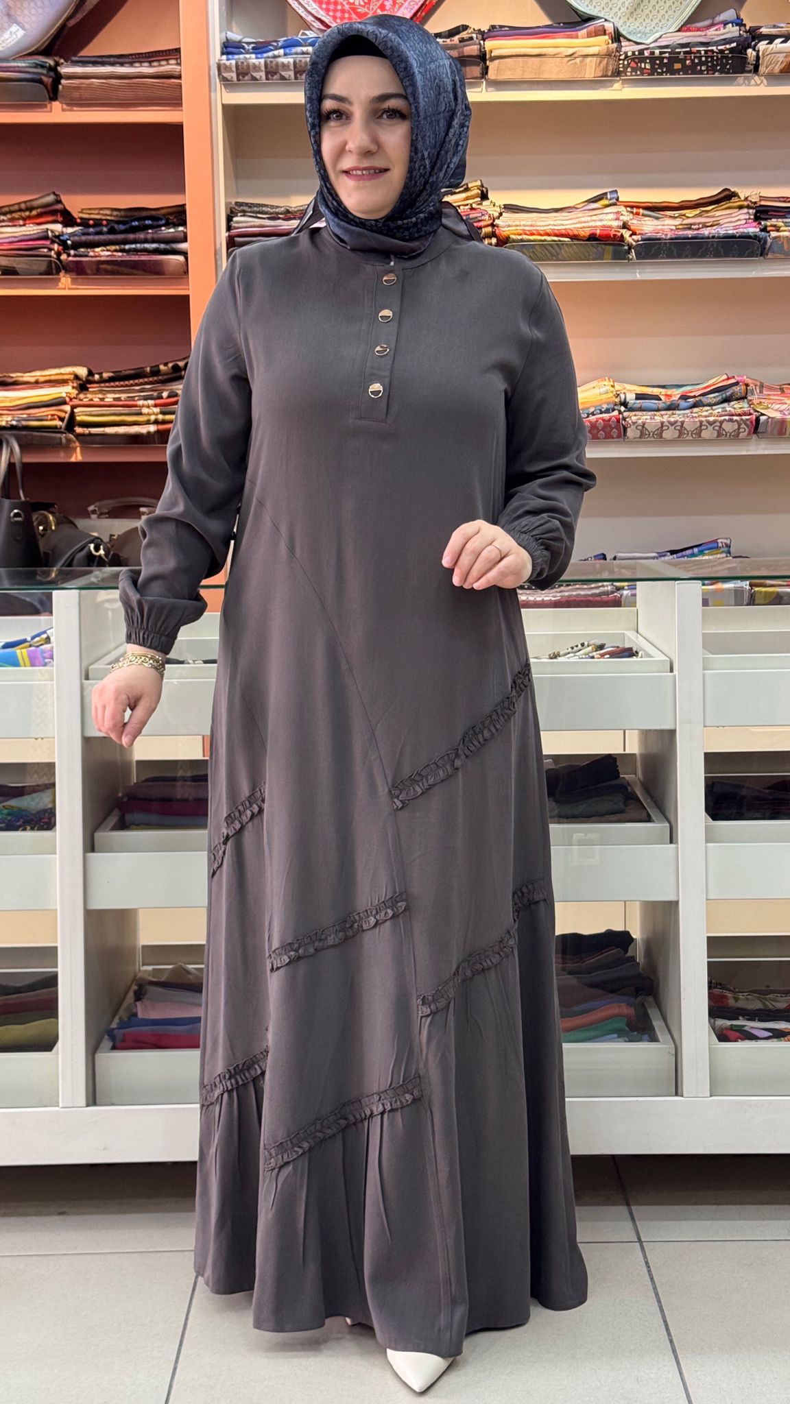 Ribanası Şerit Detaylı Etekli Takım Kahverengi/1176